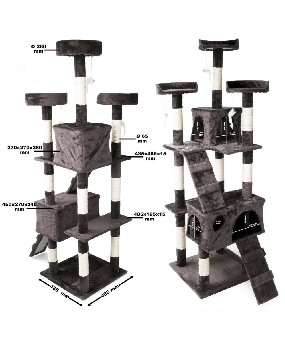 Kratzbaum in grau 170cm mit Katzenhäusern, Leitern & Plattformen