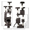 | Abmessungen | Gesamthöhe: 170 cm Tiefe: 50 – 60 cm Variable Breite durch schwenkbare Aussichtsplattformen: 50 – 60 cm Bodenplatte: 49 x 49 cm Sisalstämme Ø 7 – 8 cm Toröffnung Haus: 17 – 20 cm |