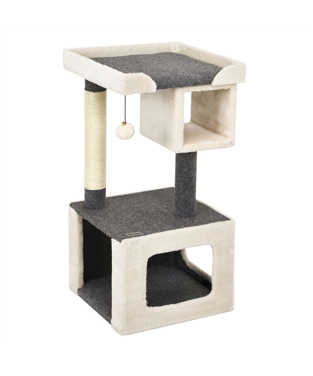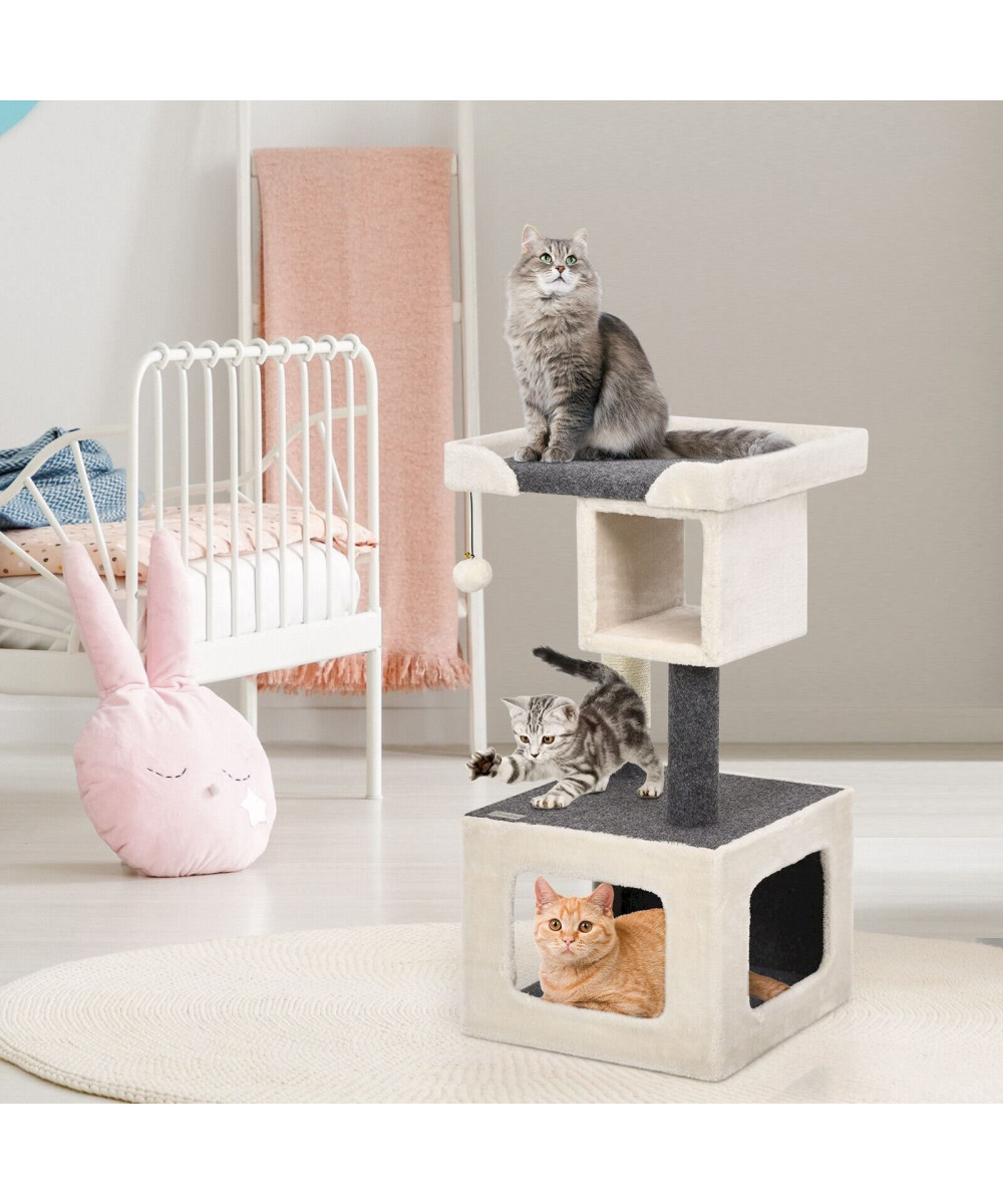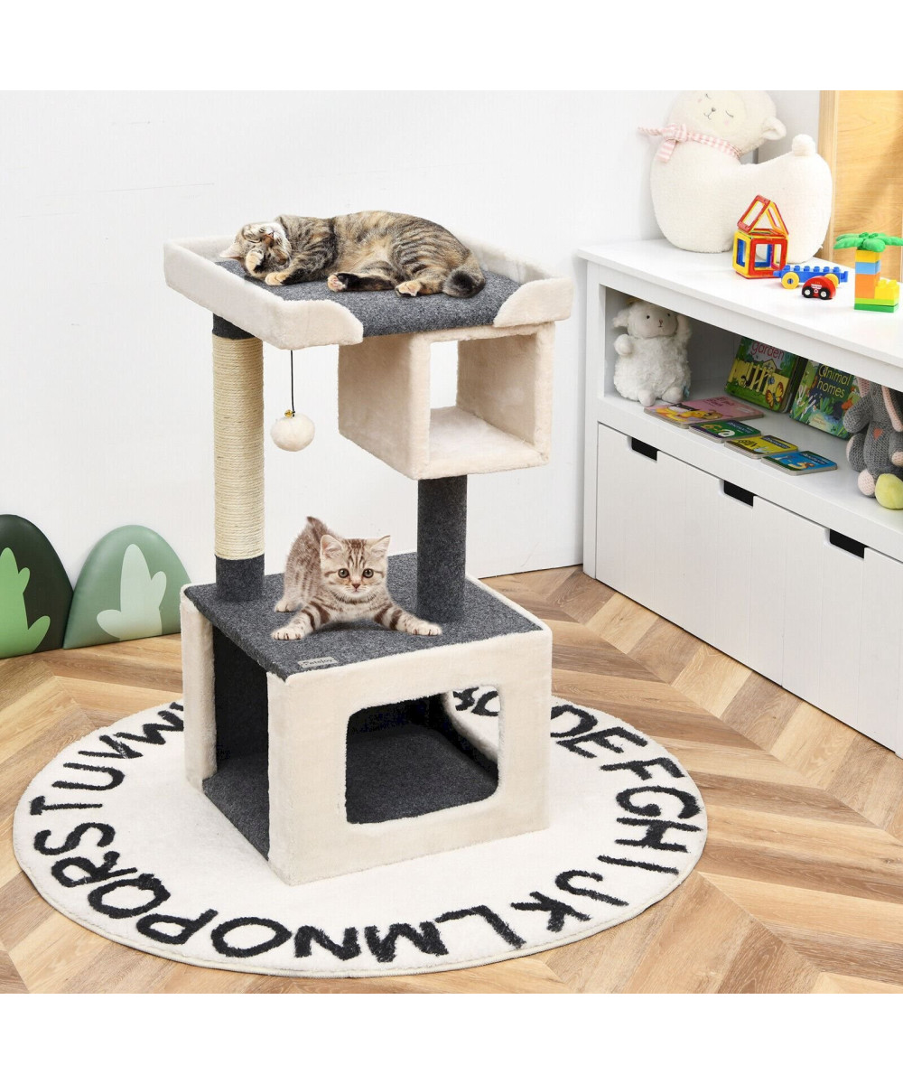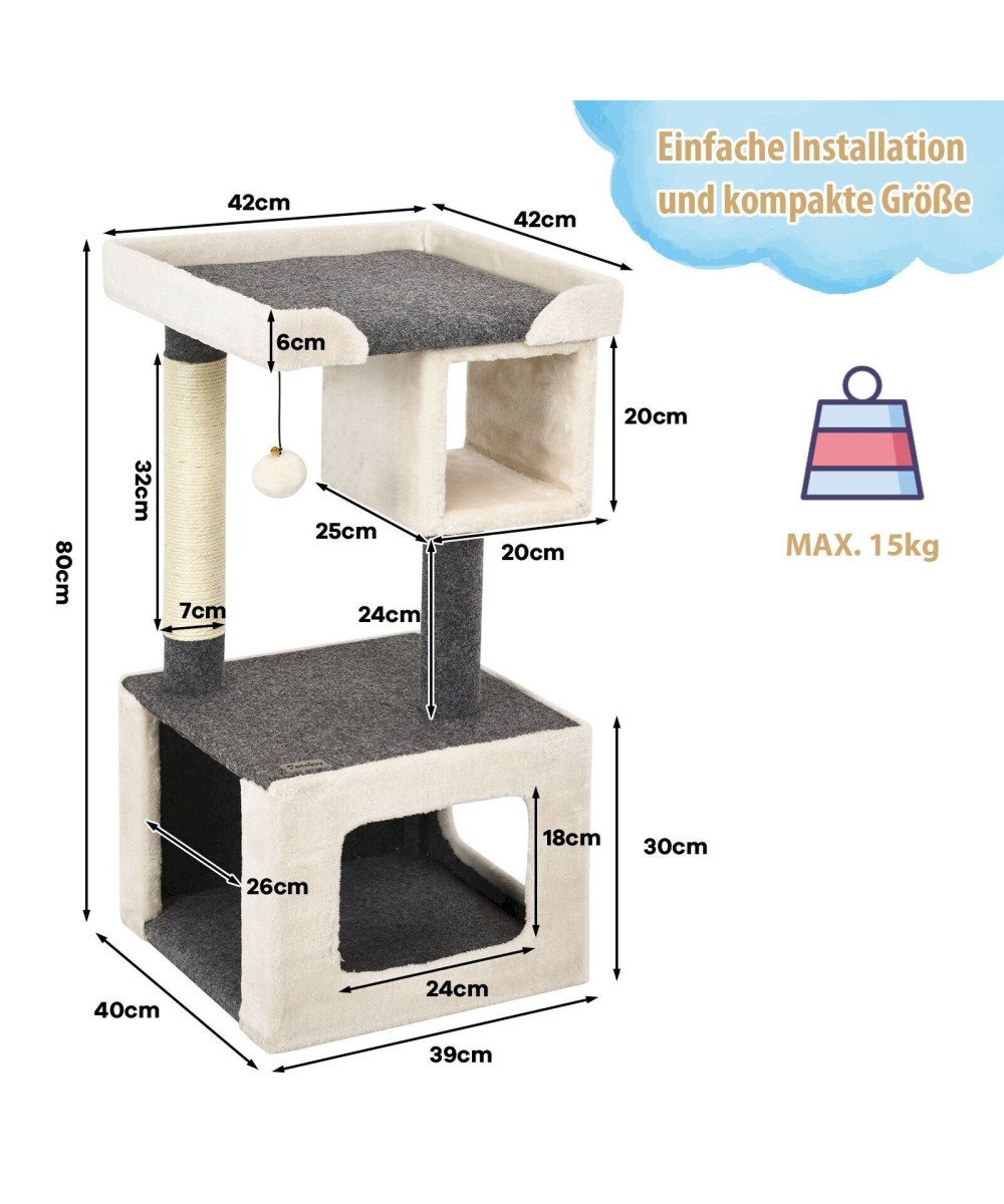 COSTWAY Kratzbaum klein Katzenkratzbaum Holz weiß und grau 42x42x80cm