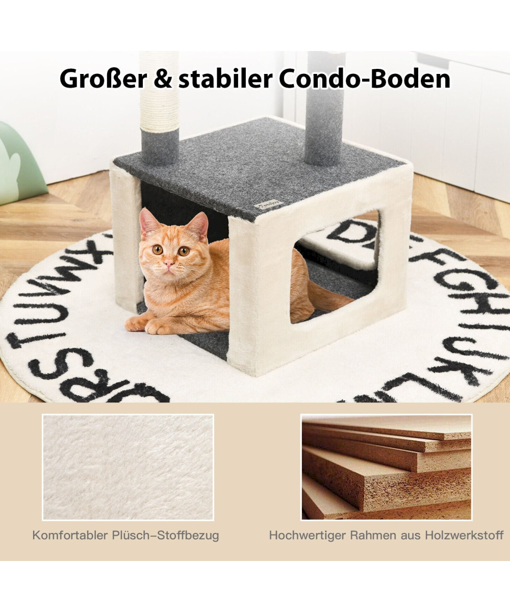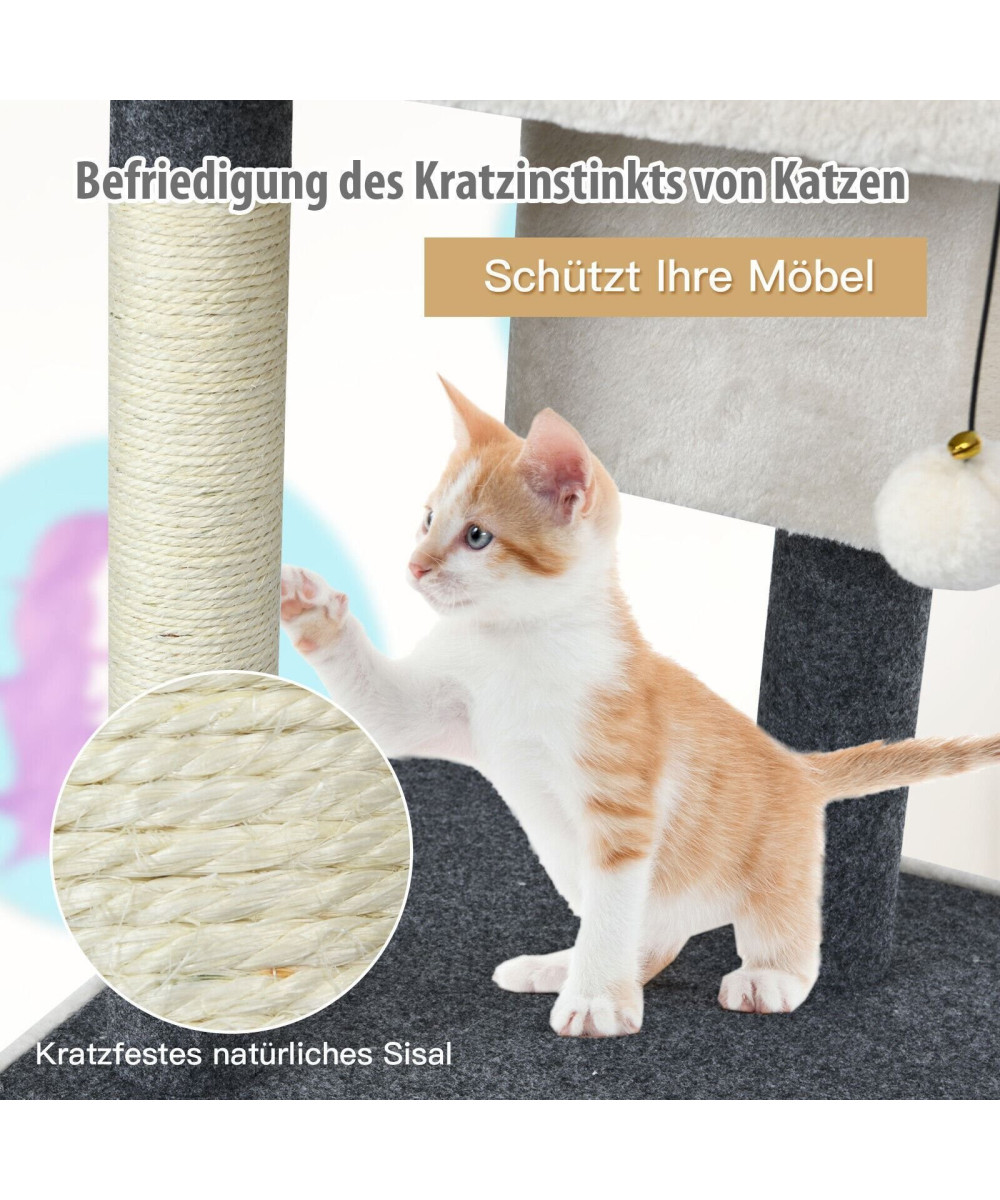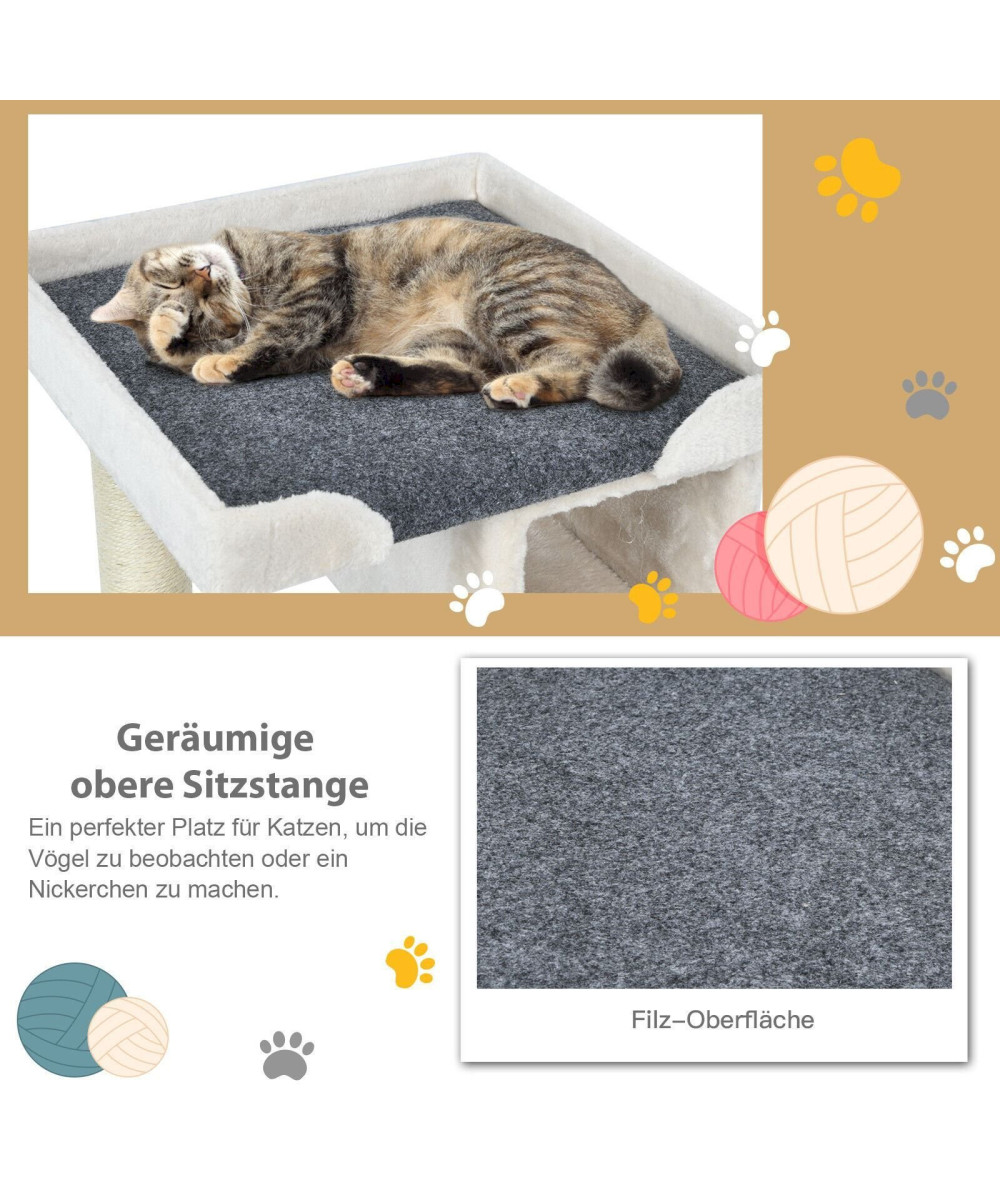 【 Durchdachte Details 】 Die Kratzstämme sind mit natürlichem und langlebigem Sisal umhüllt, somit werden Katzen nicht mehr an Möbel gehen. Durch die verschiedenen Ebenen können sie nach Herzenslust herumklettern.