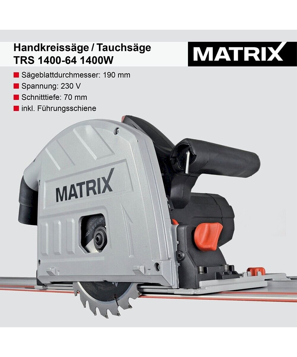 MATRIX Handkreissäge Tauchsäge mit Führungsschiene TRS 1400-64 1400W 190mm 69mm
