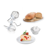 - Knethaken mit Teigabweiser, Schlag- und Rührbesen