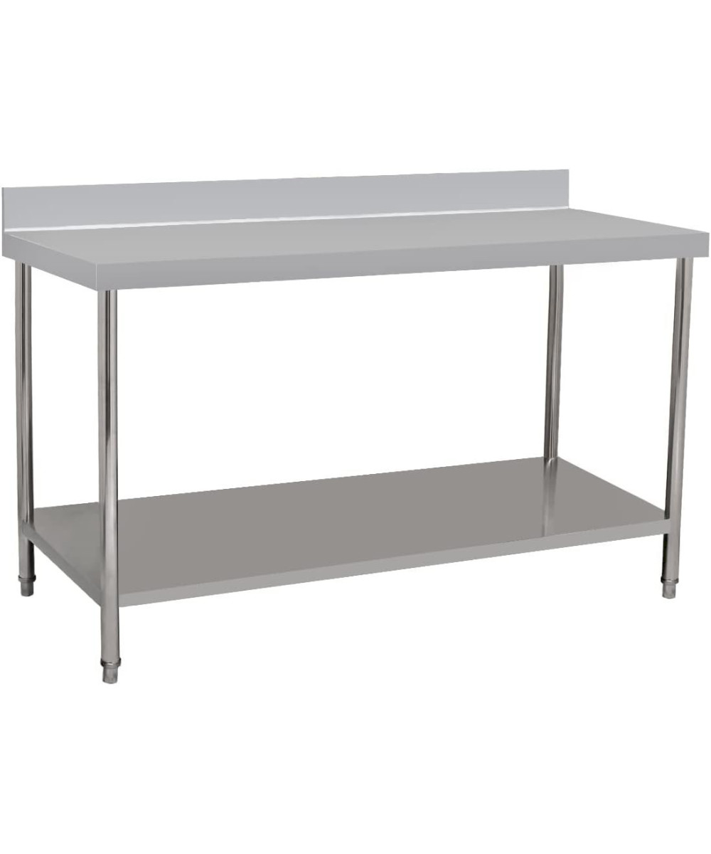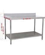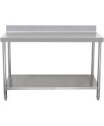 Die Rückseitige Aufkantung verhindert das Lebensmittel hinter den Tisch fallen. Hiermit ist ein sauberes Arbeiten in einer professionell ausgestatteten Küche gewährleistet.