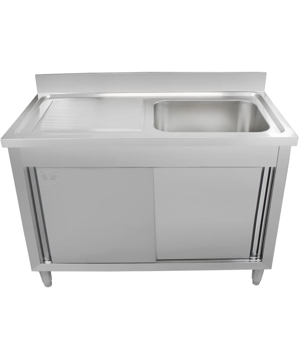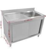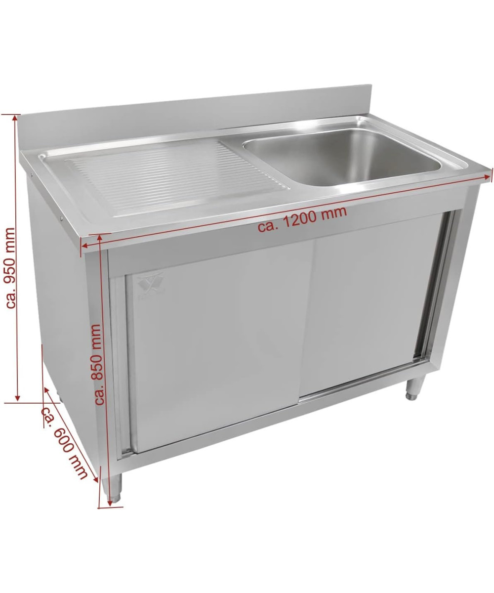 - Gastro Küchen Spültisch mit Unterschrank, komplett aus rostfreiem Edelstahl gefertigt, schnell und leicht zu reinigen