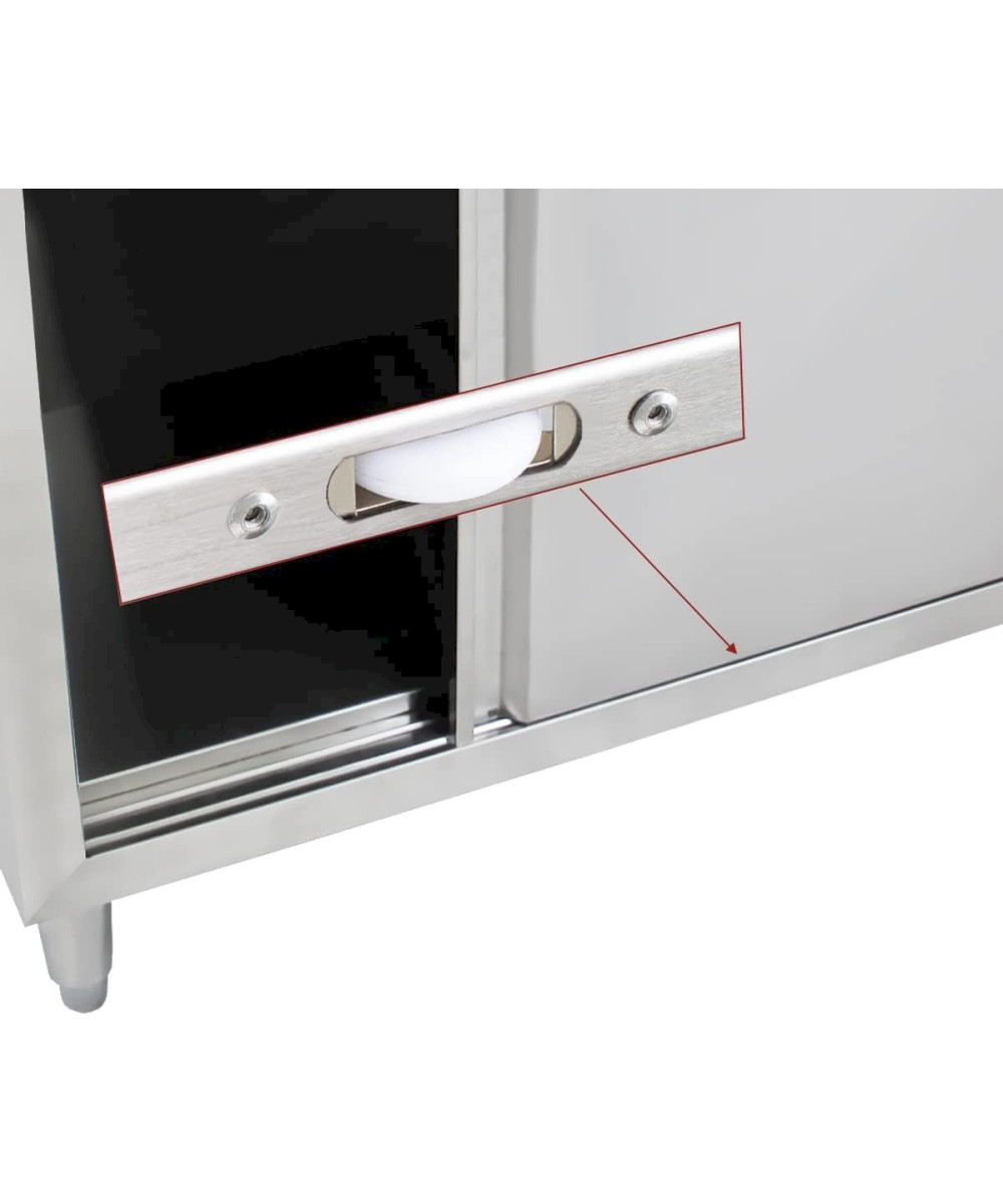 Der GSB120 Spültisch von Beeketal verfügt über ein großzügiges Spülbecken mit Abtropffläche und einen integrierten Unterschrank mit leichtgängigen, auf Rollen gelagerten Schiebetüren mit eingearbeiteten Griffleisten. Der Gastro Küchenschrank wird komplett aus rostfreiem Edelstahl gefertigt und ist sehr stabil in seiner Ausführung. Zudem verfügt der Edelstahlschrank über 4 fein justierbare Stellfüße zum Ausgleich von Bodenunebenheiten.