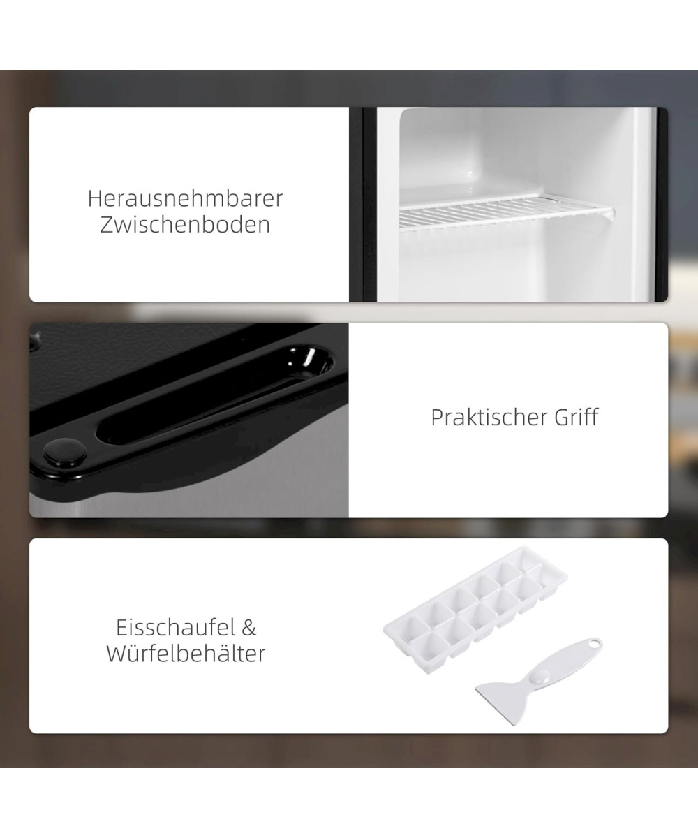 Entfernbares Regal & verstellbare Tür: Das Regal im Inneren des Mini-Gefrierschranks ist herausnehmbar, um Lebensmittel unterschiedlicher Größe unterzubringen. Und die Tür lässt sich umbauen, sodass sie zur anderen Seite aufgeht und für die meisten Standorte geeignet ist.