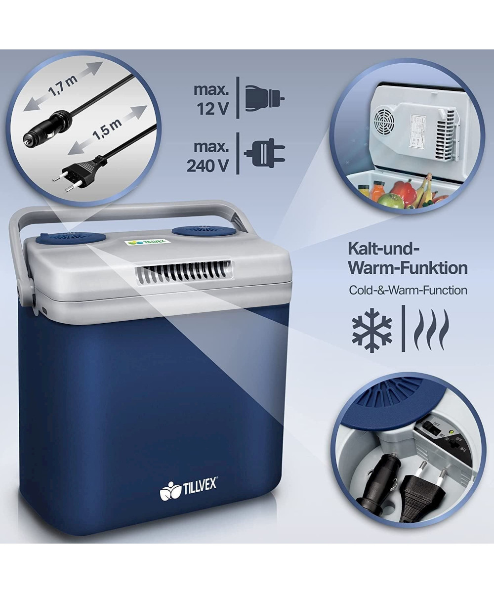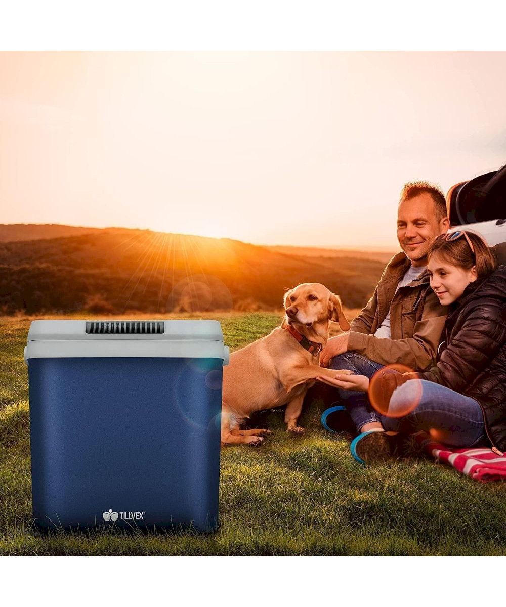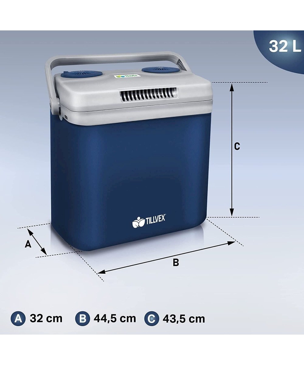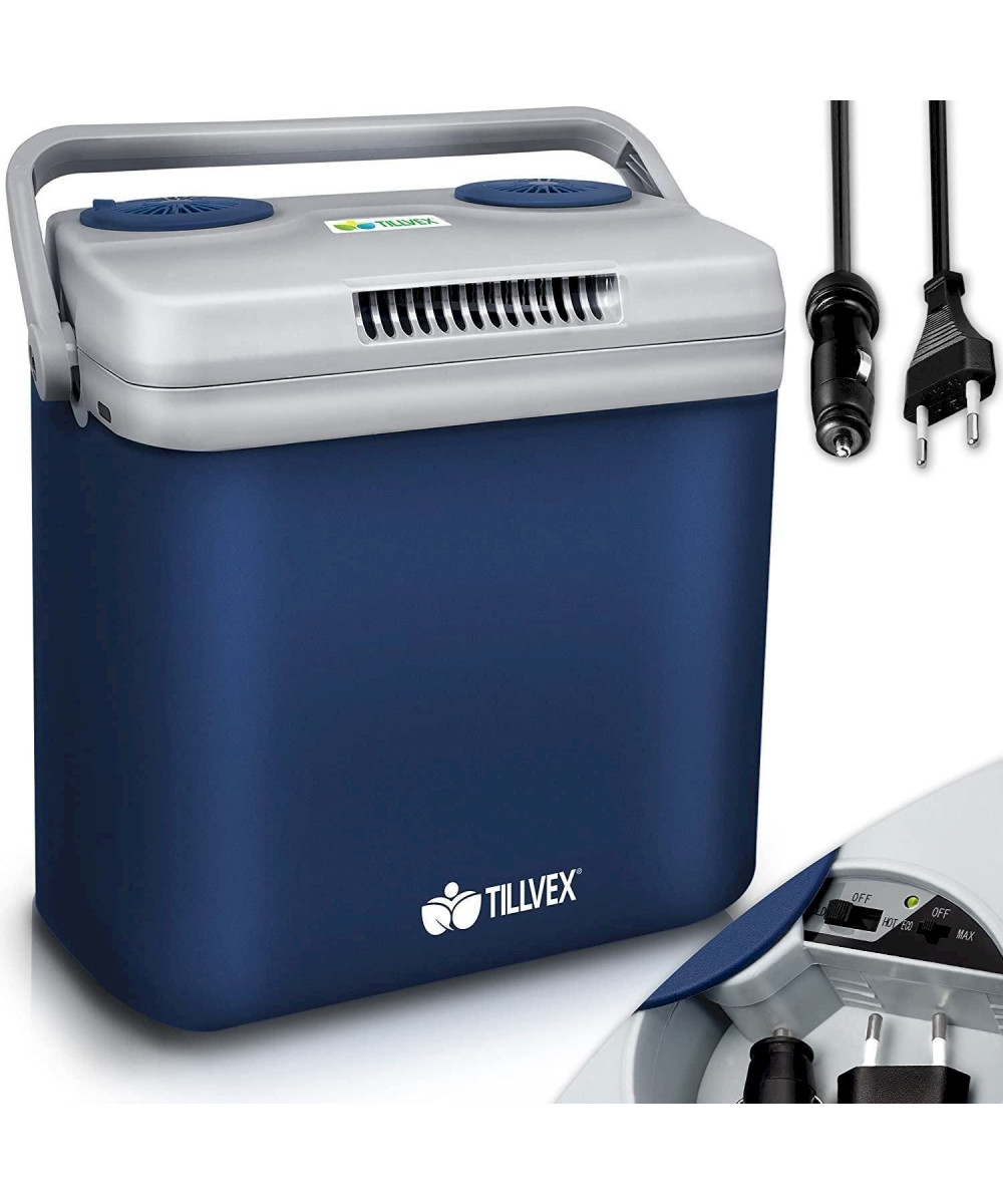 tillvex Kühlbox elektrisch 32L Blau Mini-Kühlschrank 230 V und 12 V für KFZ Auto Camping