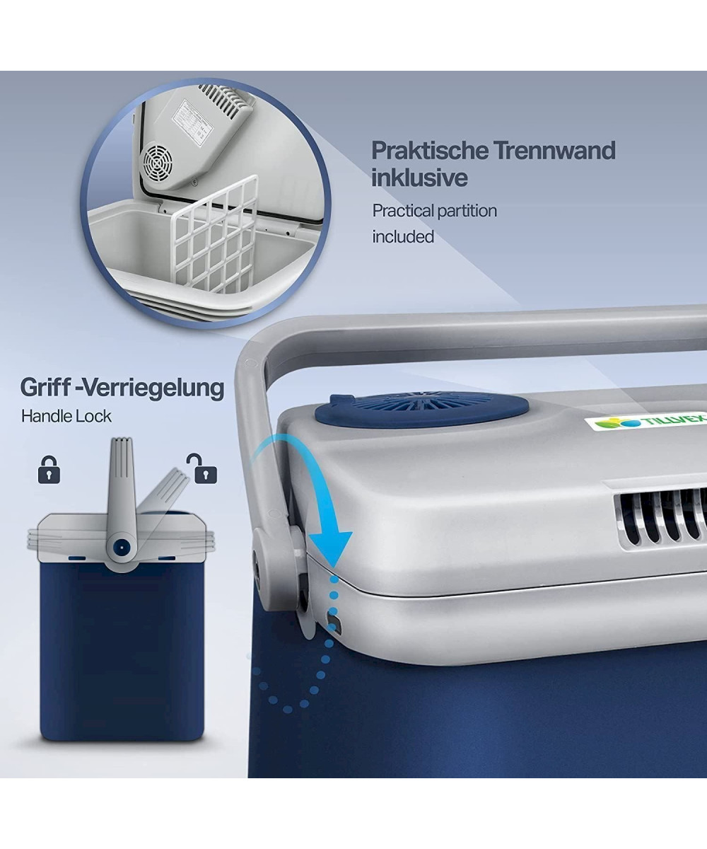Mit unsere tillvex Elektro-Kühlbox bieten wir Ihnen einen idealen Begleiter zum Campen, Picknick, für den Urlaub oder den Ausflug zum Badesee.