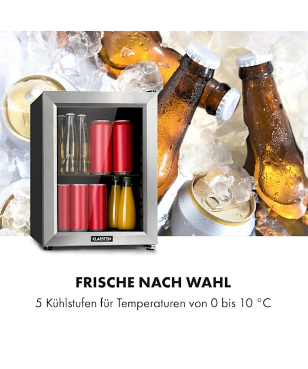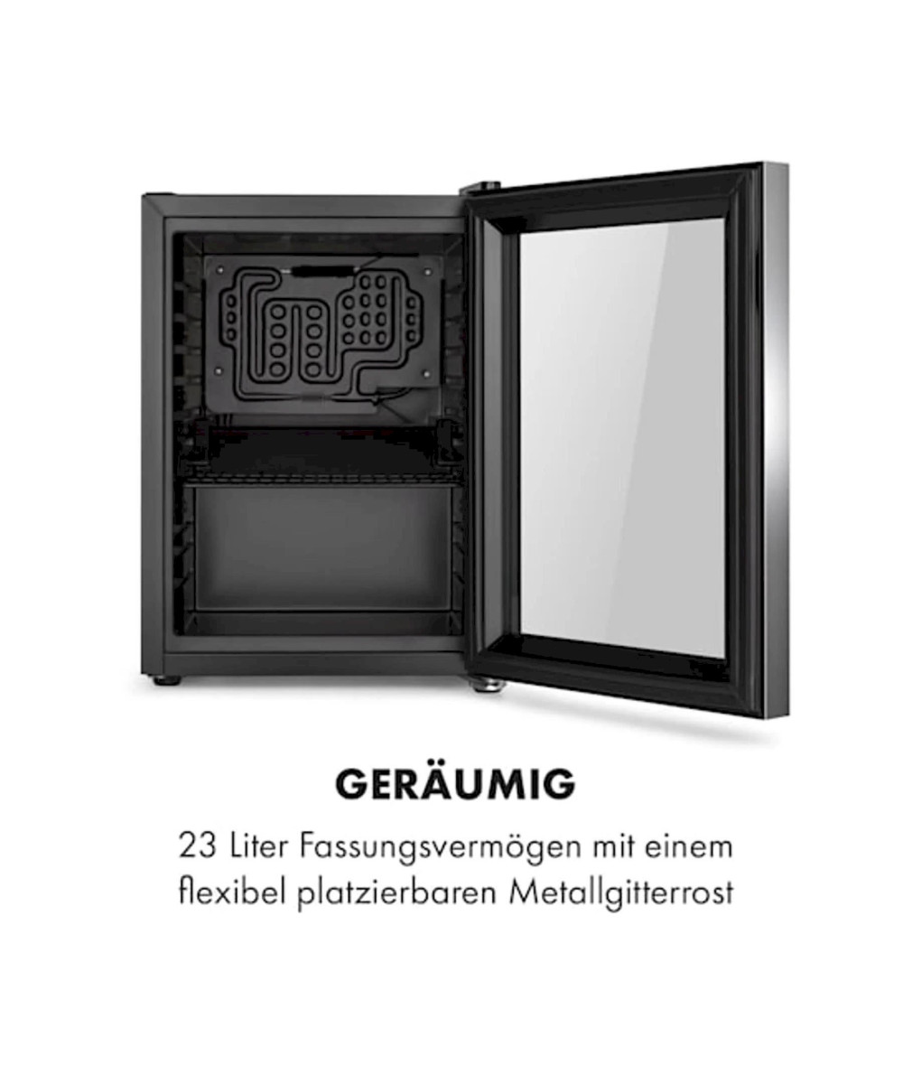 Beste Kühlung in edlem Schwarz: Der Klarstein Harlem Getränkekühlschrank ist der perfekte Aufbewahrungsort für frische Lebensmittel und kühle Getränke in Kleinhaushalten, Partyräumen, Büros oder Gartenhäusern! Trotz seiner kompakten Maße ist der Klarstein Harlem Getränkekühlschrank ganz groß in Sachen Stauraum: 23 Liter Nutzinhalt und ein Metallrost bieten viel Platz für Nahrungsmittel und Getränke.