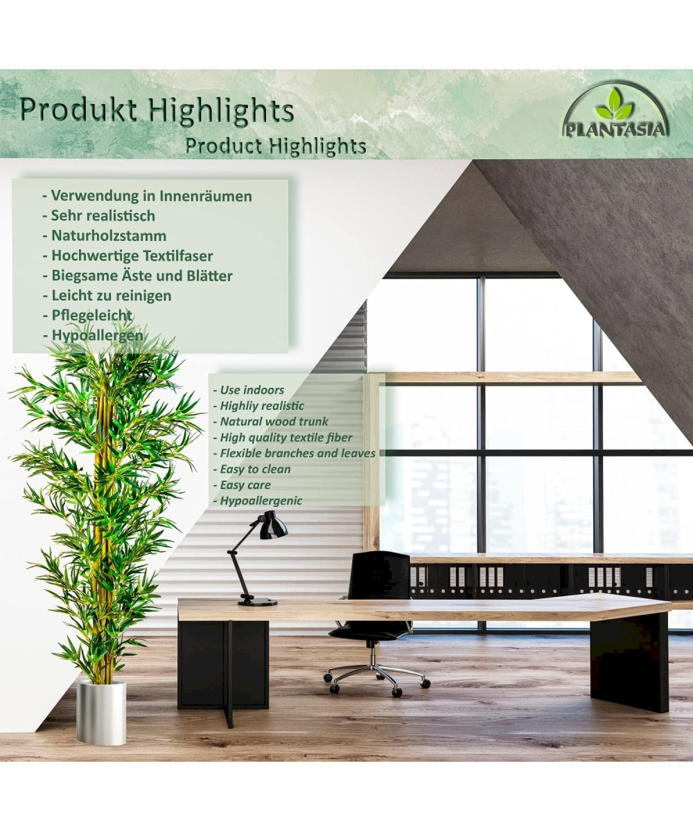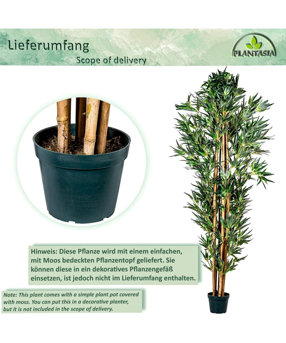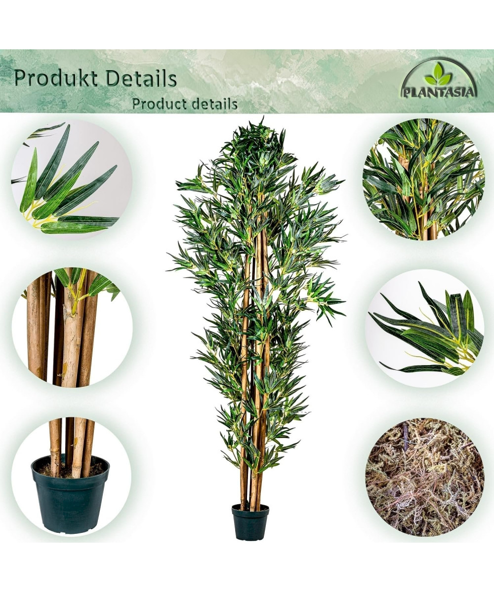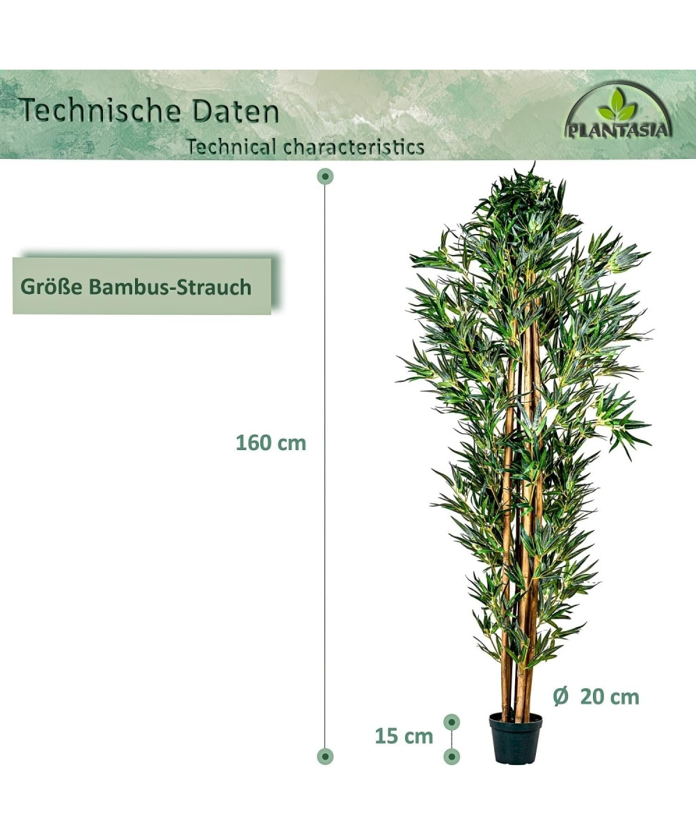 Der künstliche Bambusstrauch ist 160 cm hoch und hat einen authentisch Stamm mit ca. 1104 Blättern