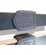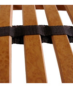 Die in federnden Trio-Kautschukkappen gelagerten und mehrfach verleimten, flexiblen 44 Federholzleisten (bei 2 Meter Länge) sind holmüberdeckend, somit gibt es keine Lücke im Doppelbett.