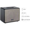 Der Blackmore Giant verfügt über einen Bluetooth®-Empfänger mit einer Reichweite von ca. 10 Metern, wodurch eine bequeme Bedienung des Gerätes vom Smartphone oder Tablet aus ermöglicht wird. Für Abspielgeräte ohne Bluetooth®-Funktion besitzt der Lautsprecher einen Aux-Eingang für 3,5mm Stereoklinkenstecker. Praktischerweise schaltet sich die Bluetooth®-Einheit stumm, sobald ein USB-Stick oder ein Aux-Kabel angeschlossen wird. Über den USB-Port können Dateien im MP3- und WAV-Format wiedergegeben werden.
