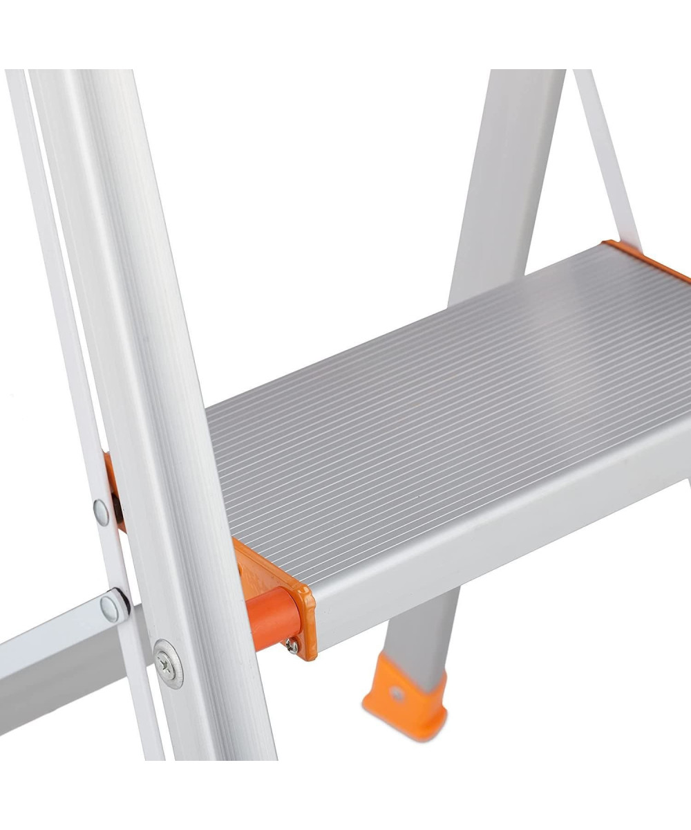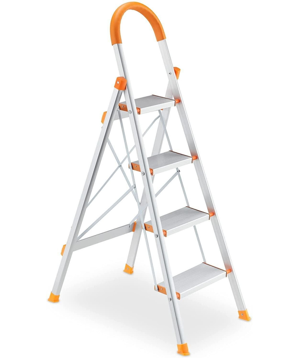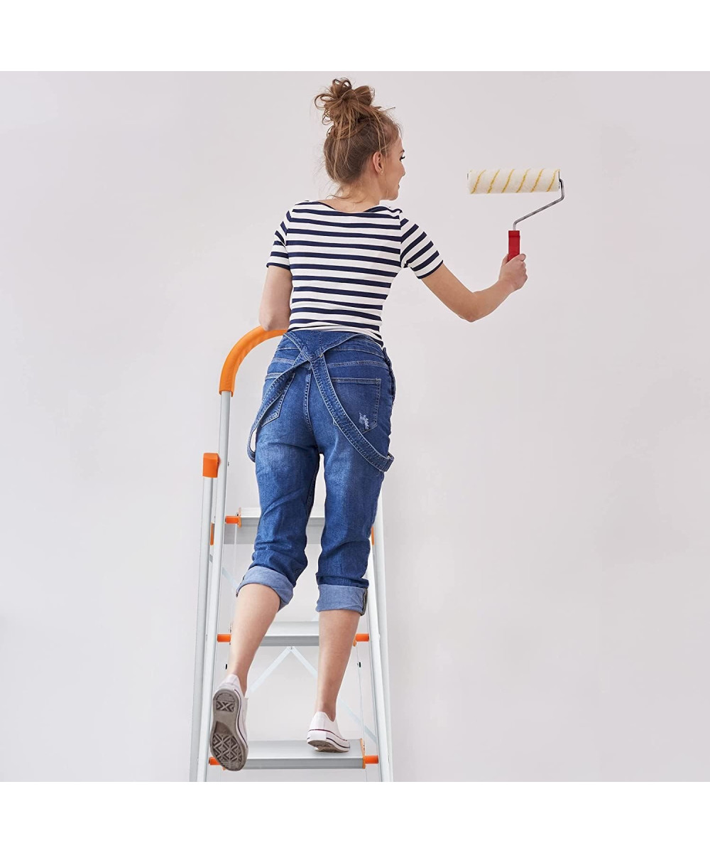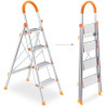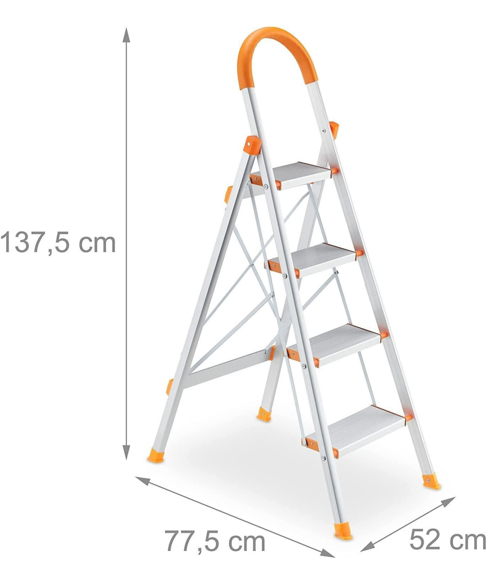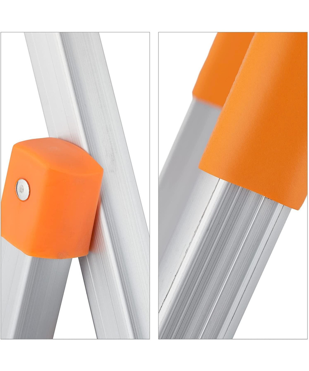 Trittleiter 4 Stufen klappbare Alu Haushaltsleiter Silber/Orange