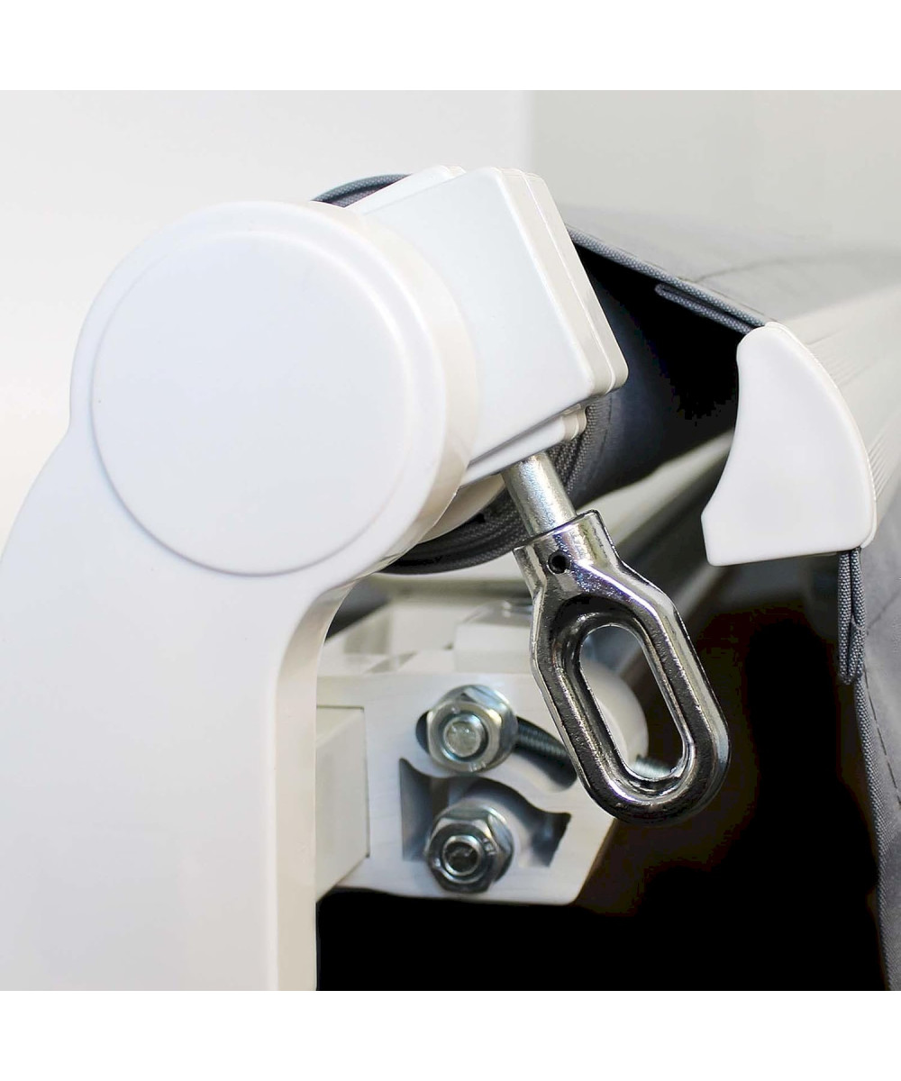 Die Sonnenmarkise überzeugt durch eine hochwertige Konstruktion. Der Rahmen besteht aus langlebigem Aluminium, während die Gelenkarme aus stabilem Stahl gefertigt sind. Diese Kombination gewährleistet Stabilität und Langlebigkeit, selbst bei wechselnden Witterungsbedingungen.