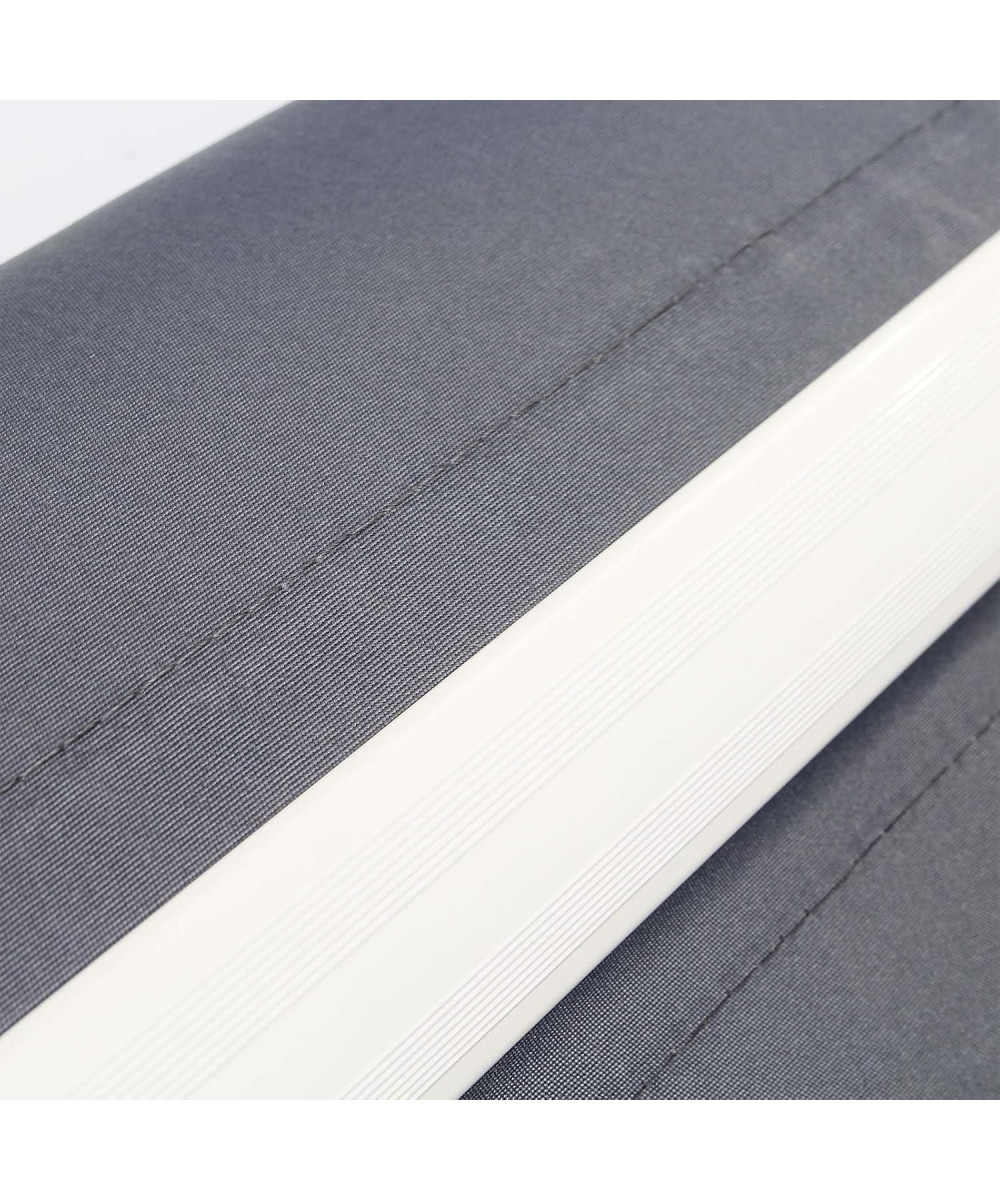 Die Markise ist mit einem 280 g/m² schweren Polyestergewebe ausgestattet, das nicht nur wasserdicht ist, sondern auch einen Lichtschutzfaktor von 30+ bietet. Diese UV-resistente Beschichtung schützt vor schädlichen Sonnenstrahlen und sorgt für ein angenehmes und geschütztes Ambiente.