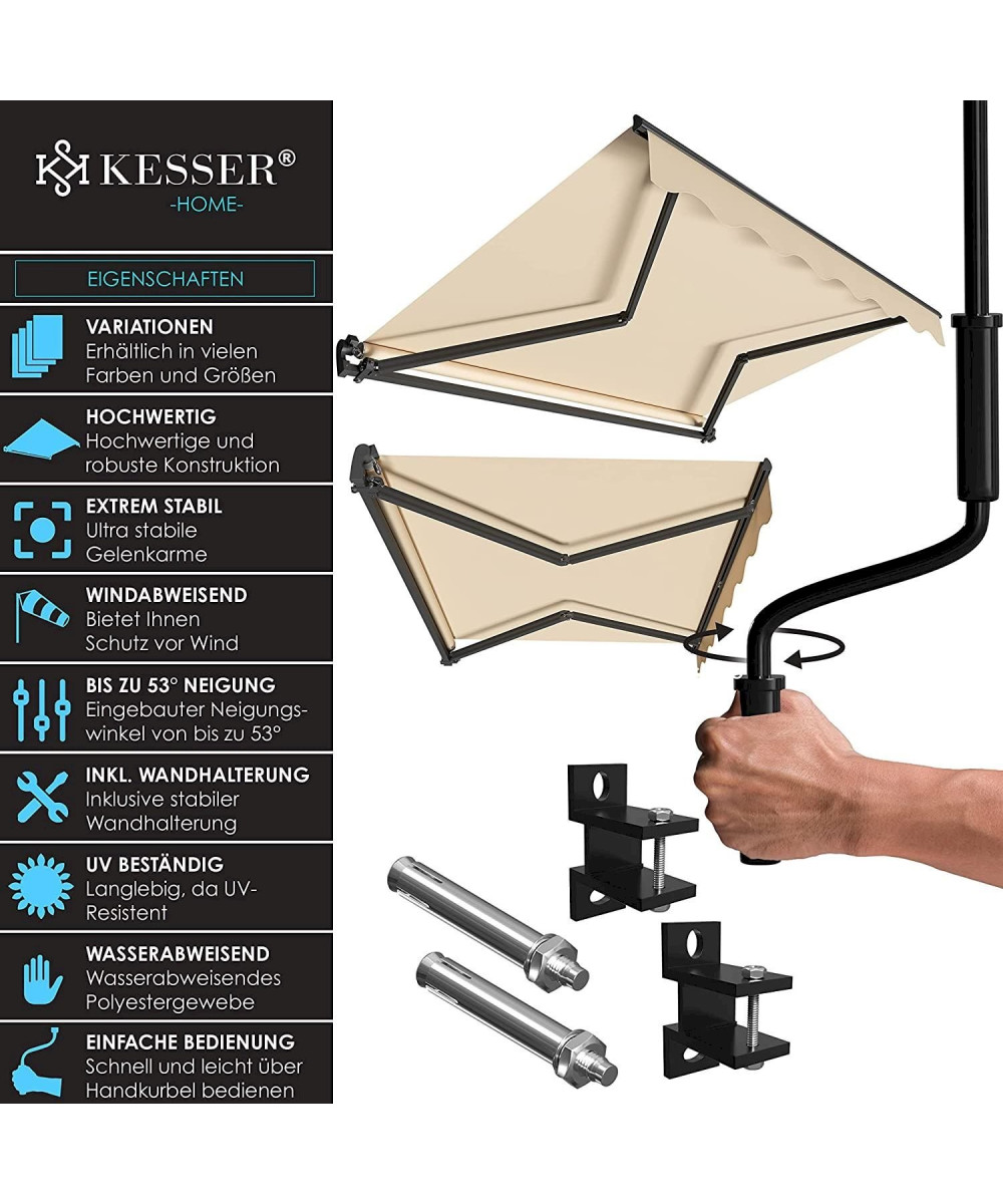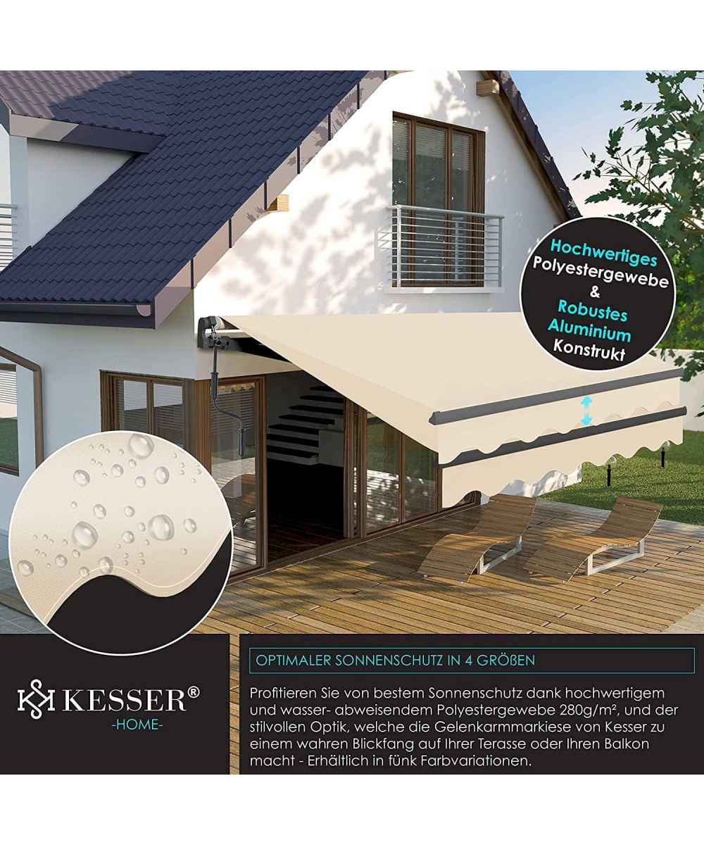 KESSER Gelenkarmmarkise Markise Sonnenmarkise manuelle 300 x 250 cm Beige