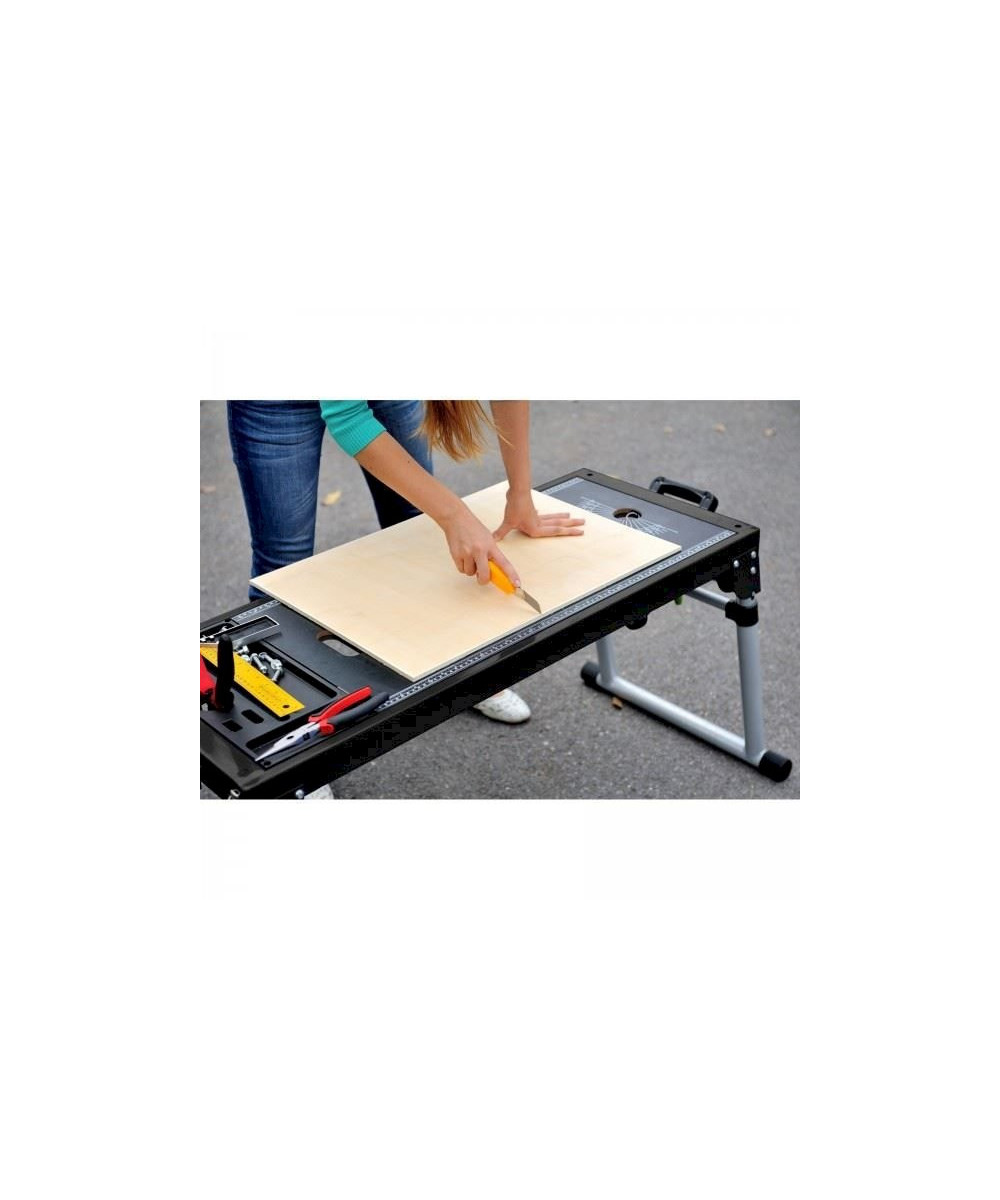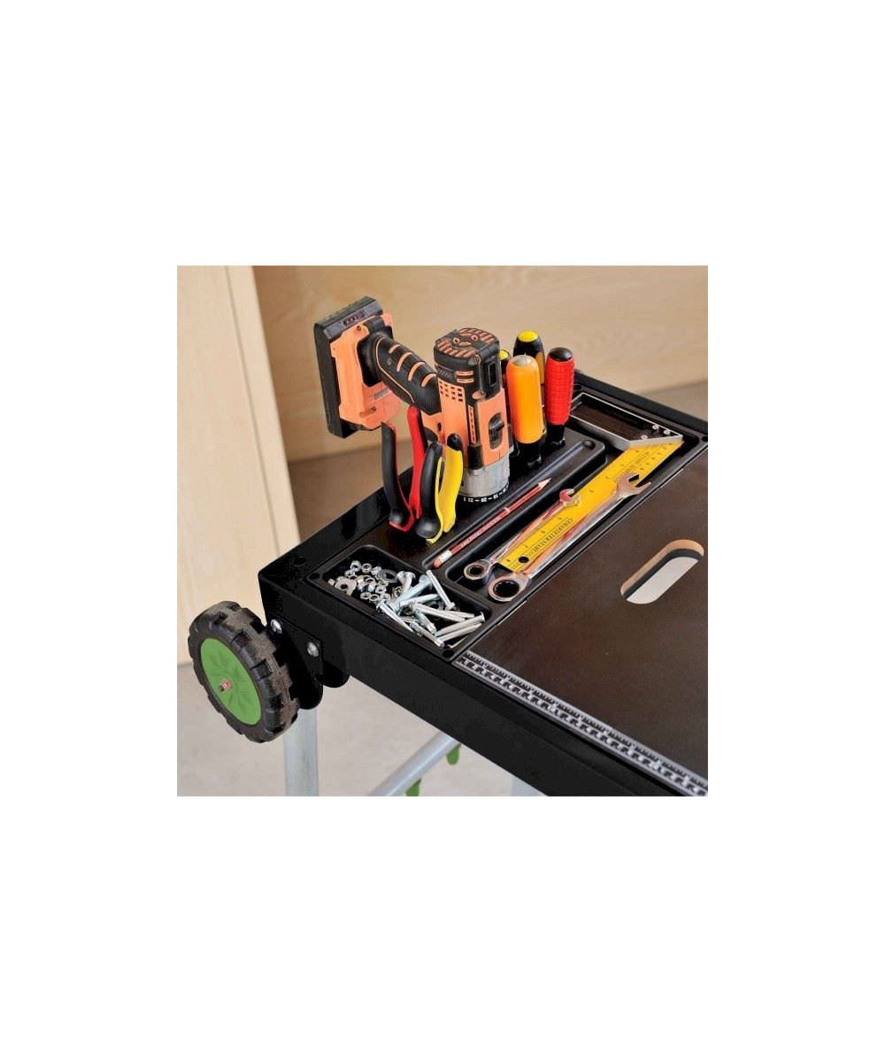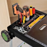 - 1x Multifunktionswerktisch, vormontiert, ohne abgebildetes Handwerkzeug und Kappsäge