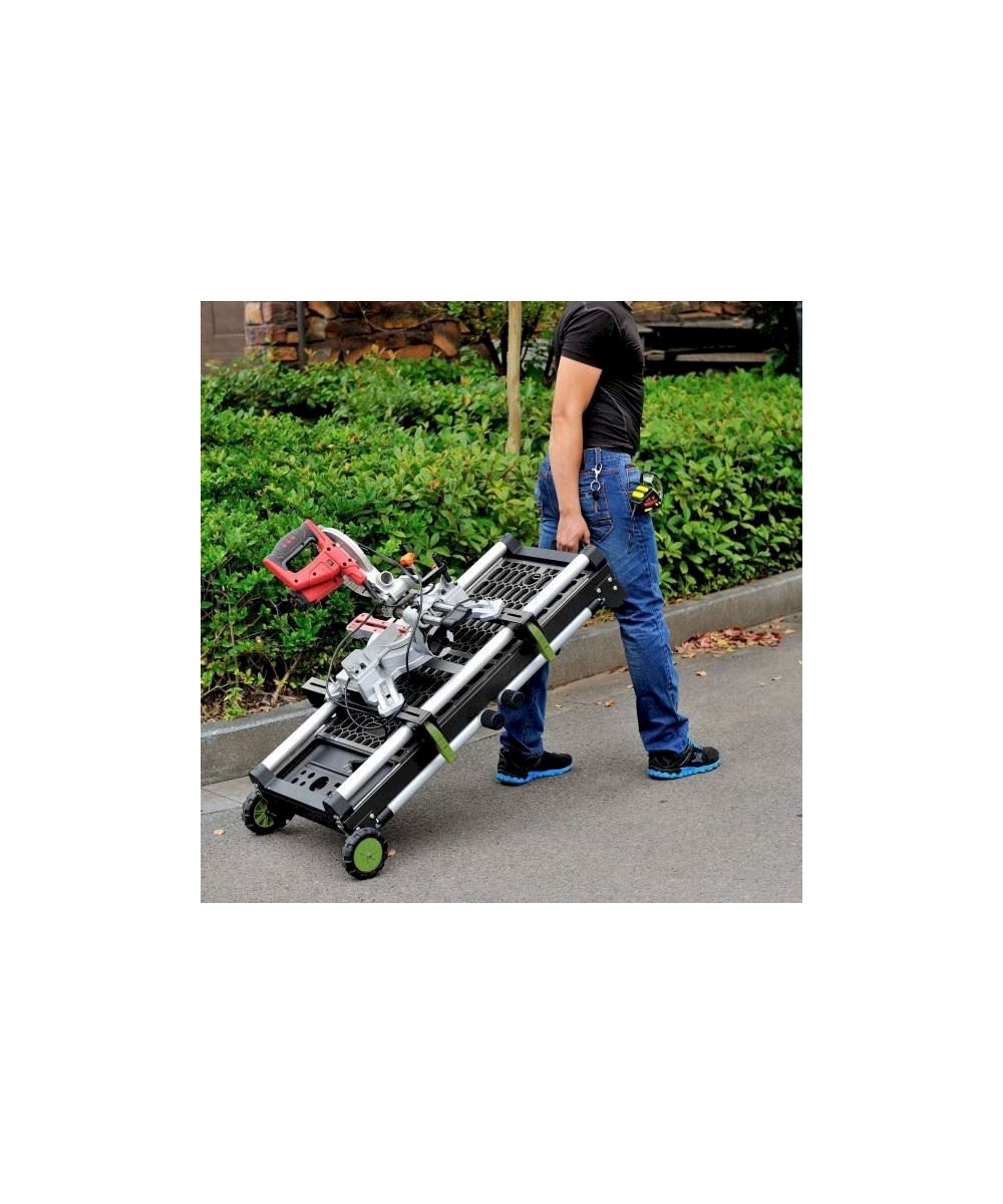 Nutzbar ist das Multitalent als Rollliege, Werktisch, Arbeitsbock, Transportkarre, Untergestell für die meisten handelsüblichen Maschinen wie, Kappsägen, Gehrungssägen, Hobel, Bandsägen, Band- und Tellerschleifer, und vielem mehr.