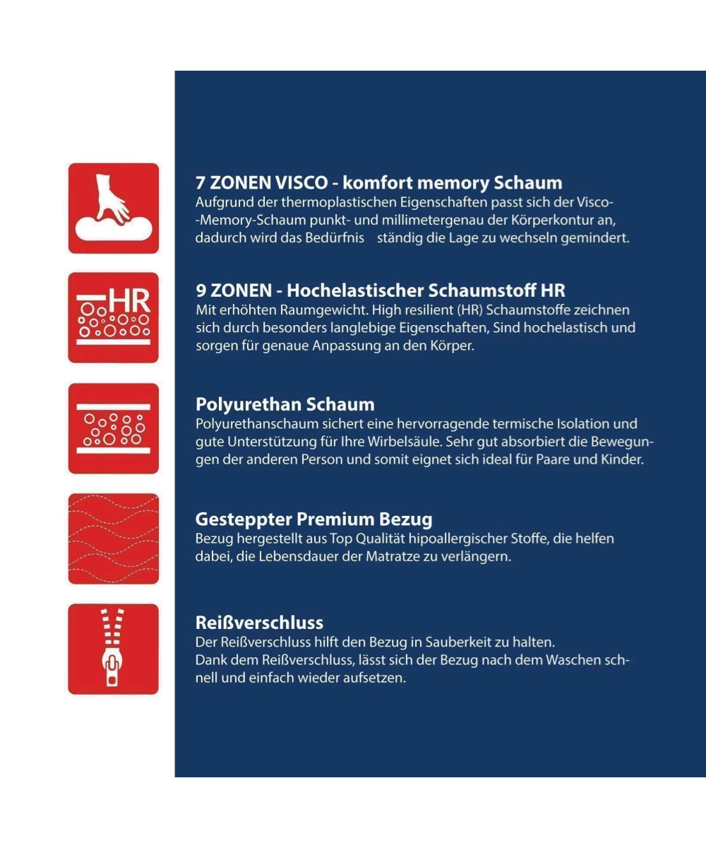 7 Zonen VISCO-KOMFORT-Memory-Schaum