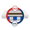 Aufgrund des unterschiedlichen Aufbaus besitzt die Matratze zwei Härtegrade. Wie auf der Abbildung zu sehen, hat die obere Liegefläche Härtegrad 4, die untere Liegefläche Härtegrad 3