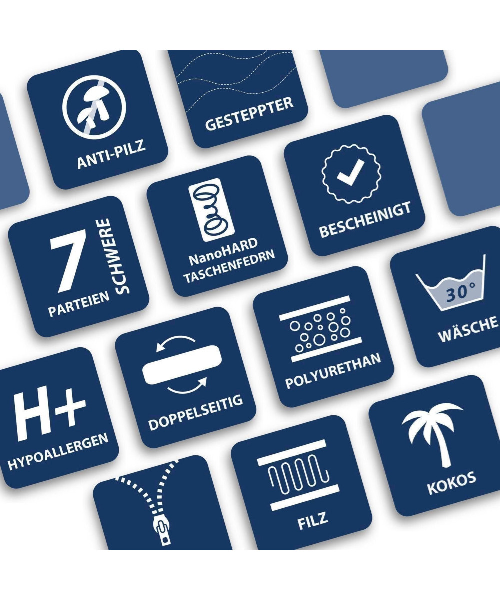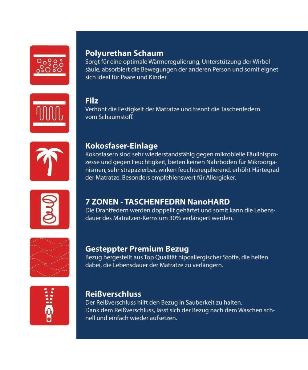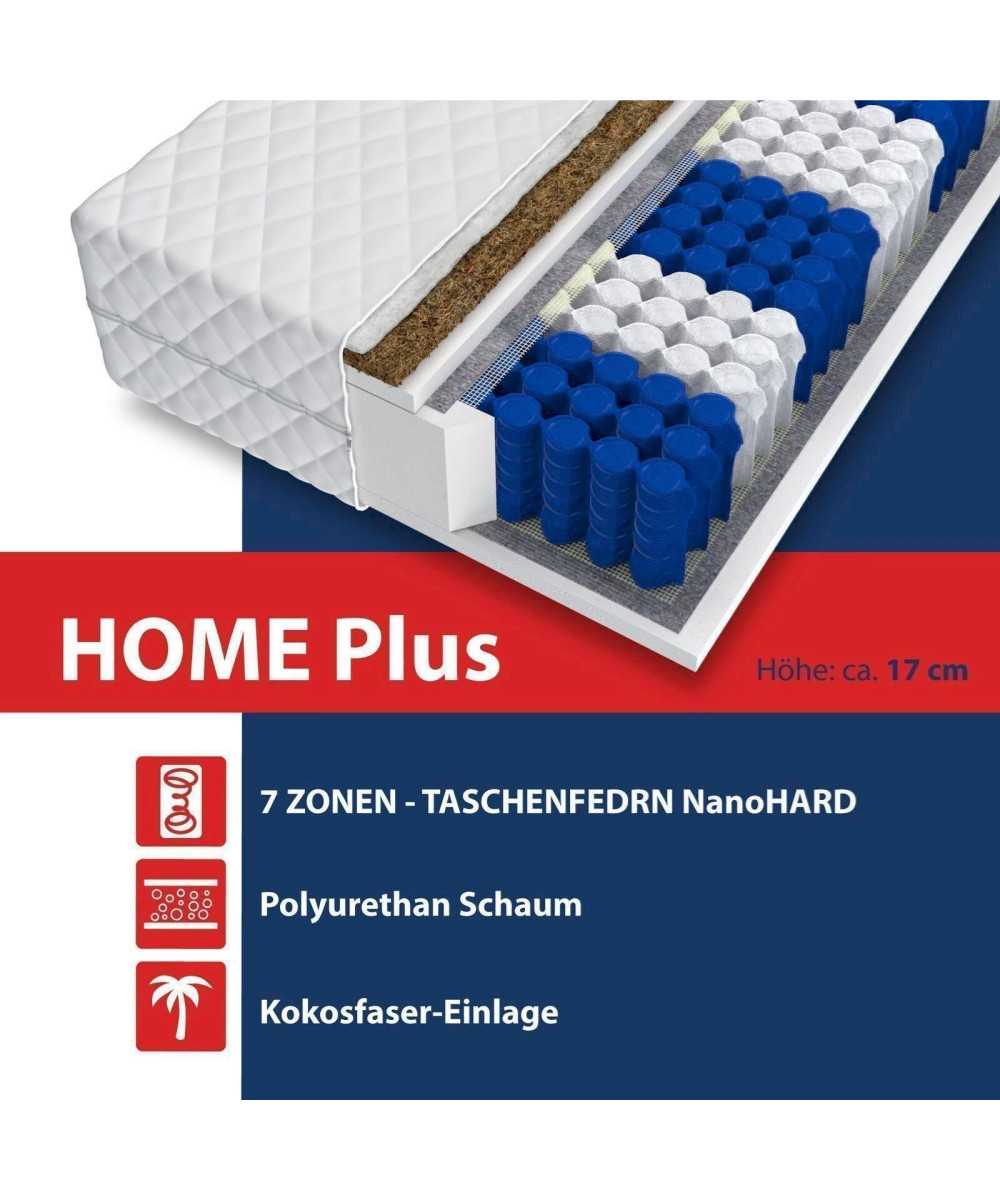 FDM Matratze 140x200 Taschenfederkern 7 Zonen Kokos HOME Plus 17 cm Premium H3 Bett