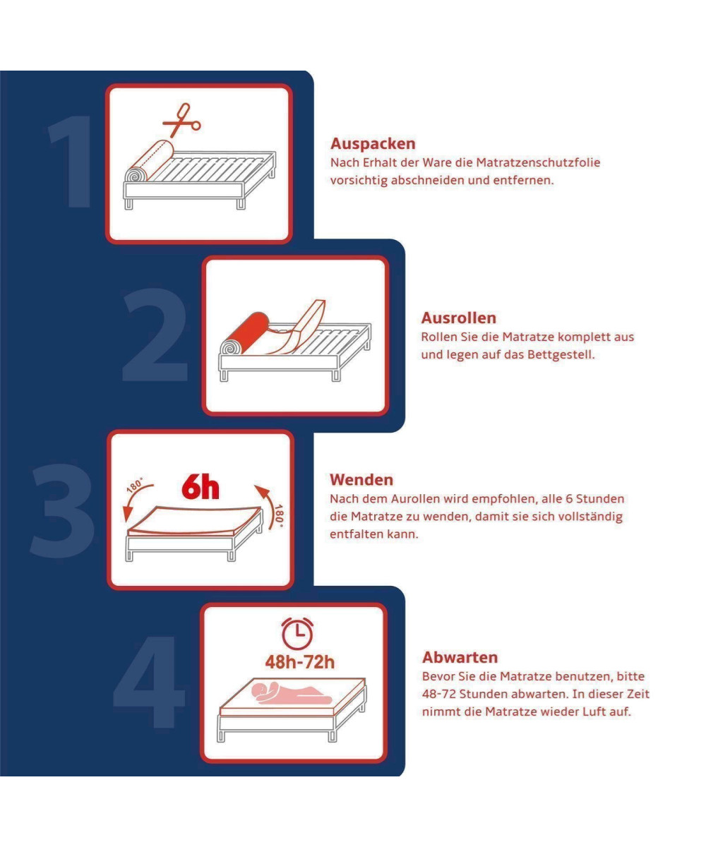 Eine mittelharte Matratze ist für Personen geeignet die 60-100 kg wiegen und für Personen die es bevorzugen auf einer mittelharten Oberfläche zu schlafen. Sorgt für die korrekte Ausrichtung des Körpers während des Schlafes und komfortable Erholung.
