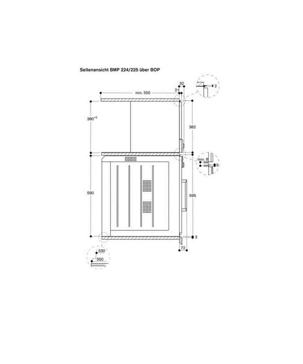 - Mindesteinbauhöhe 85 cm (Oberkante Nischenboden).
