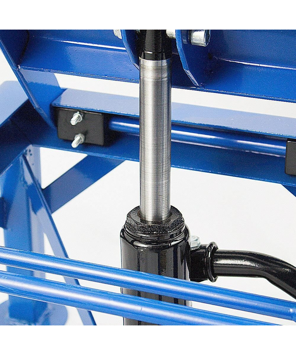 Mittels Fußpedal wird die Bühne auf die gewünschte Höhe gebracht. (Die Höhe ist dabei variabel 3-Stufig einstellbar.) Dadurch ergeben sich Hubhöhen von ca. 60cm, 75cm únd bis ca. 87cm.