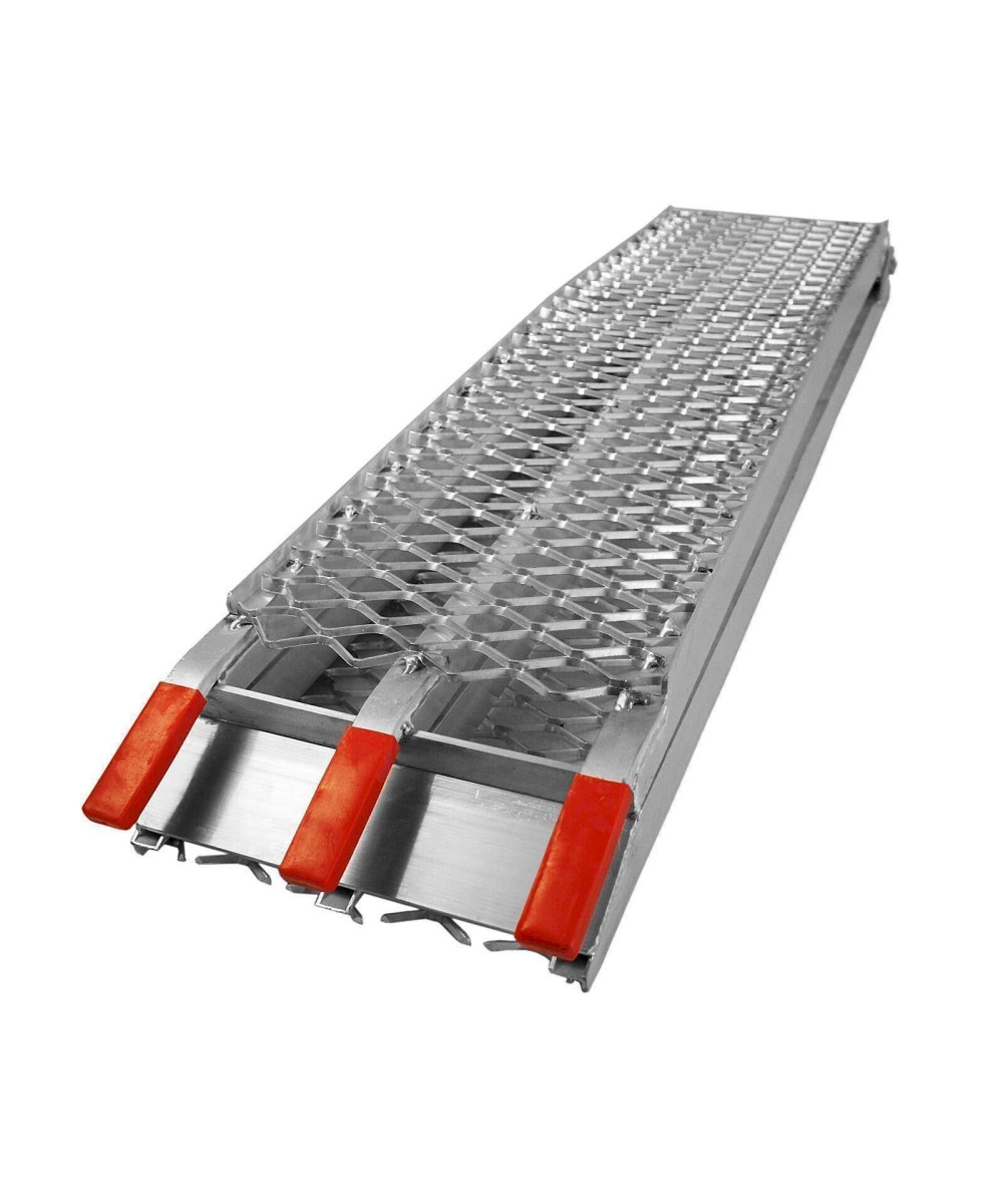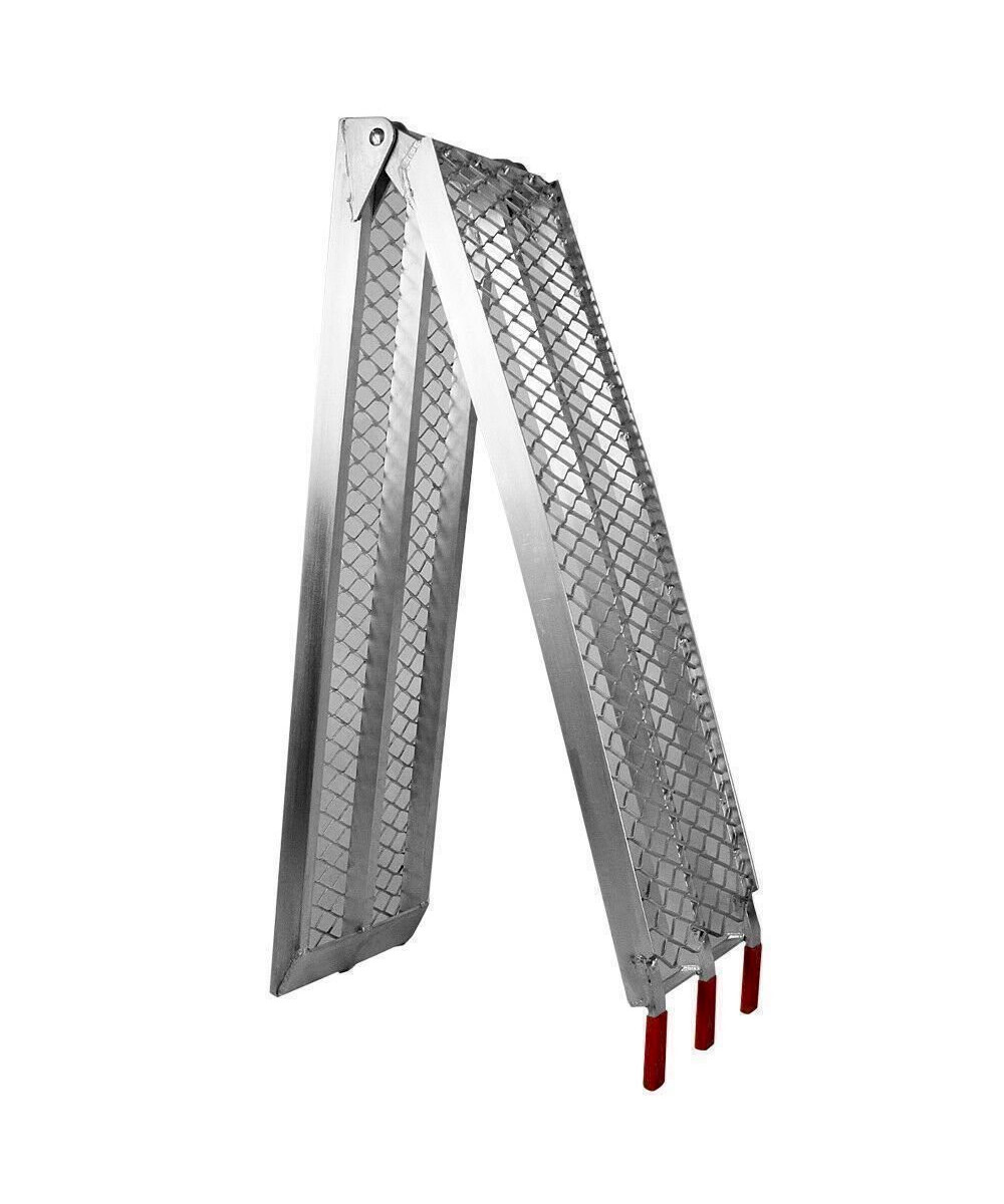 Auffahrrampen helfen Fahrzeuge oder Baumaschinen schnell und sicher zu verladen. Die stabilen Auffahrschienen sind aus leichtem und hochwertig verarbeiteten Aluminium gefertigt und bieten durch die breiten Auffahrflächen mit einer starken Profilierung überall Halt wo es feucht oder rutschig ist. Das Auf- und Abfahren oder verladen wird enorm erleichtert. Quads, Motorräder, Mopeds und ähnliches lassen sich schnell und ohne großen Aufwand in einen Anhänger oder Transporter verladen. Treppen oder andere Hindernissen lassen sich einfach überwinden. Werden die ATV-Rampen nicht benötigt, dann lassen sie sich durch die gerade Bauform und die Klappfunktion auf kleinsten Raum verstauen.