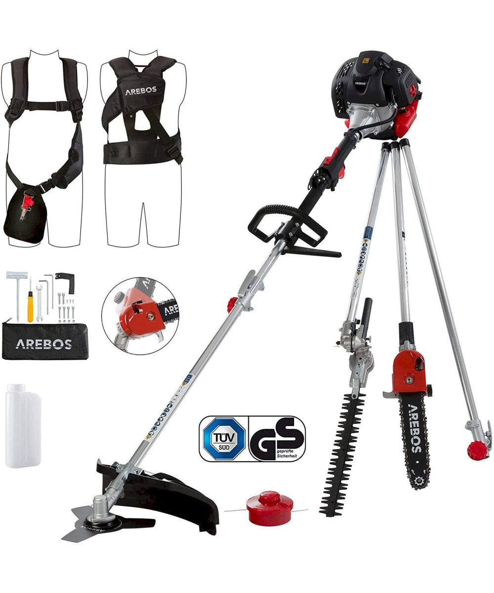 Die Arebos Premium Motorsense 5in1 ist ein modernes und schnelles Gerät, das verschiedene Arbeiten in der Garten- und Landschaftspflege dank des eingebauten Motor-Antriebs zügig und kraftsparend erledigen kann.