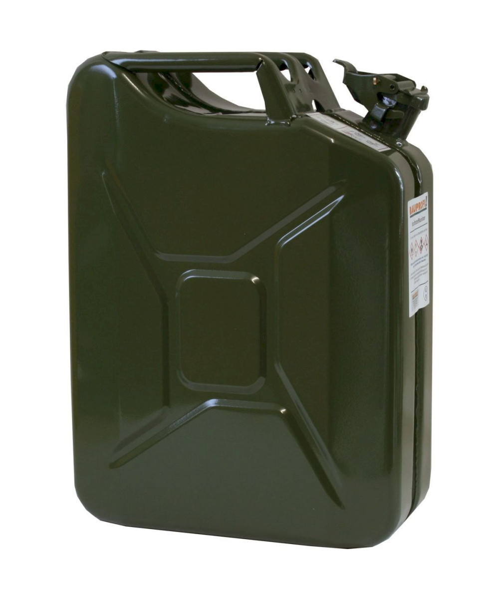 Stahlblechkanister OLIV 20 Liter + Auslaufrohr flexibel Metallkanister Benzin