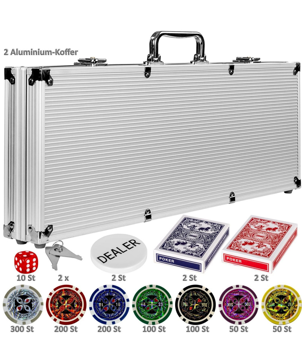- Pokerset in 2 stabilen verschließbaren (je 2 Schlüssel inklusive) Aluminiumkoffern (Material: Aluminium/Kunststoff)