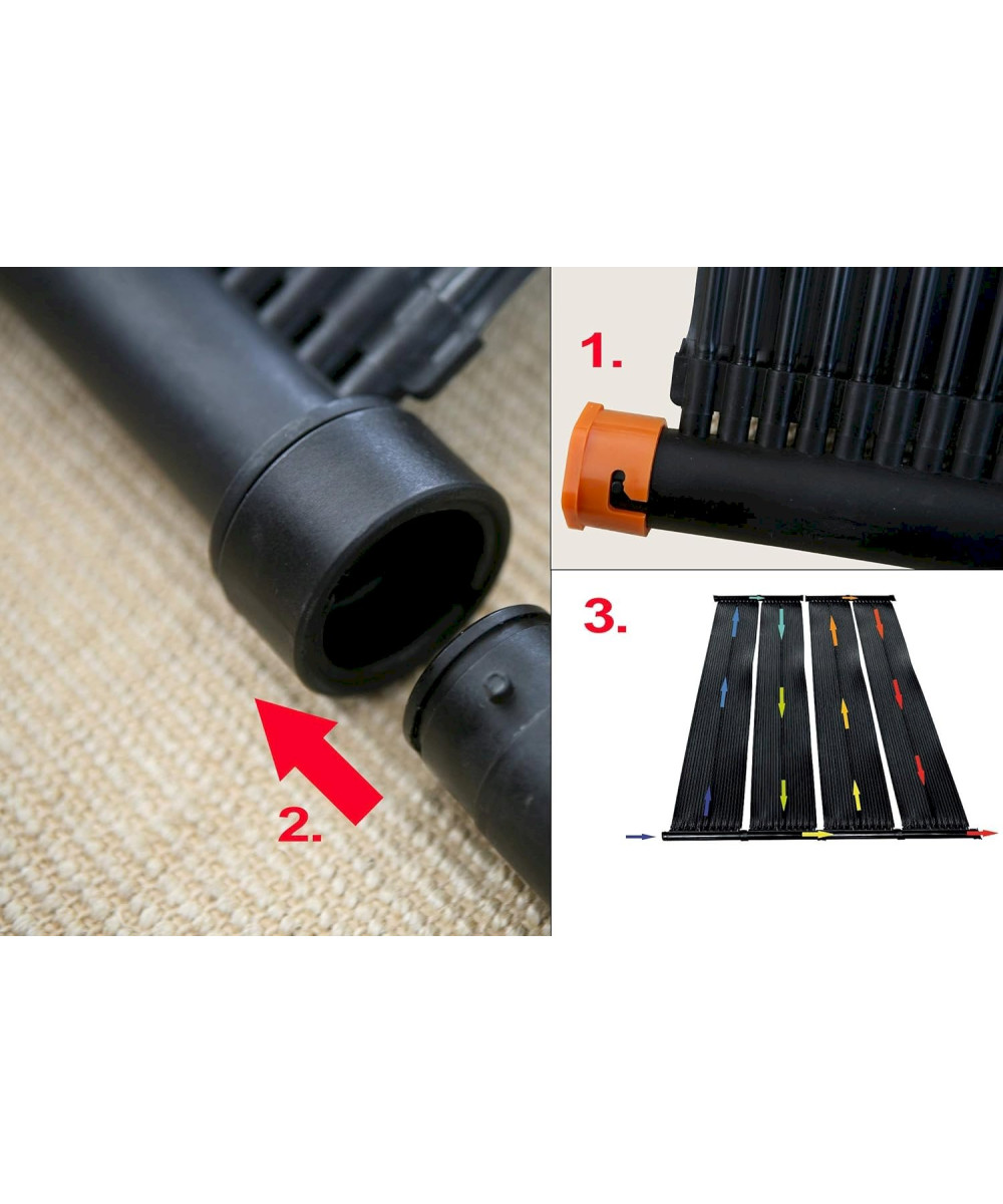 Mit SUN LDEP Solarkollektoren haben Sie nicht nur in kürzester Zeit warmes Badewasser, auch die Montage funktioniert schnell und einfach. Die Kollektoren werden bereits montagefertig geliefert. Ausschließlich die zwei Anschlussadapter für Ø 32 mm oder Ø 38 mm Schwimmbadschläuche müssen montiert werden. Ein Werkzeug ist dazu nicht erforderlich. -