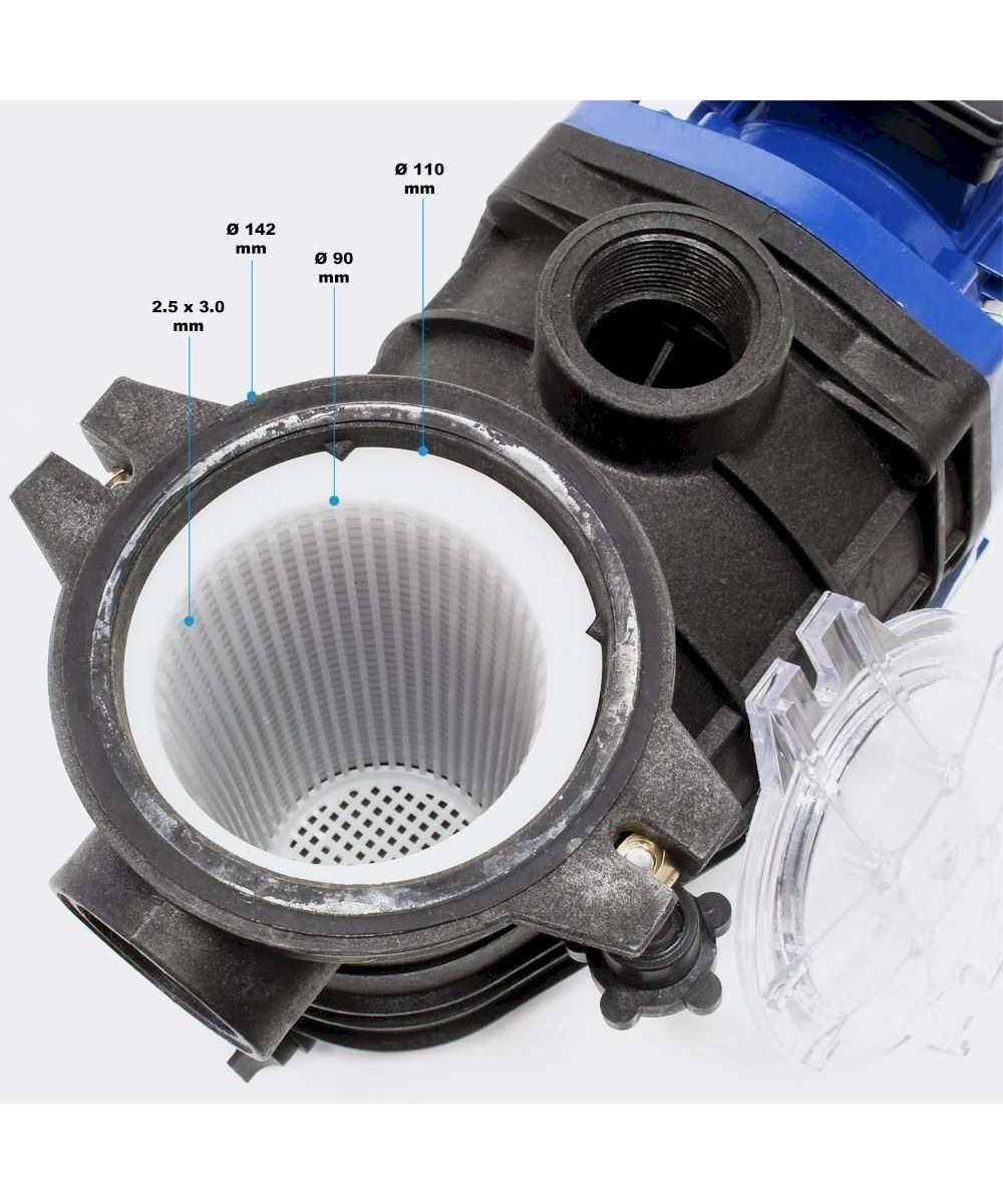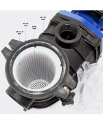 Diese Schwimmbadpumpe sorgt für Ihren ungetrübten Badespaß und eignet sich ideal, um im Filterkreislauf Ihres Schwimmbads installiert zu werden. Mit dem leistungsstarken 750 Watt Motor arbeitet die Pumpe effizient und gleichzeitig sehr leise. Die Schwimmbadpumpe kann unmittelbar vor dem Filterkessel montiert werden und saugt 15.000 Liter pro Stunde in die Filteranlage, in der das Wasser gereinigt und anschließend wieder in das Schwimmbecken gespült wird. Auf diese Weise verhindern Sie eine Algenausbreitung oder, dass sich Keime im Pool sammeln. Die maximale Förderhöhe der Schwimmbadpumpe beträgt 13 Meter.