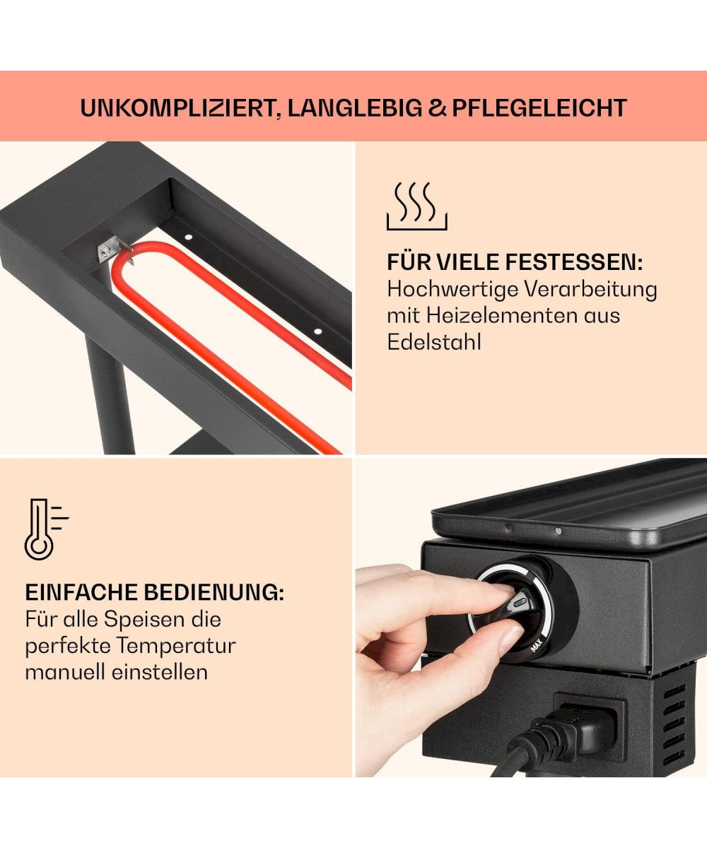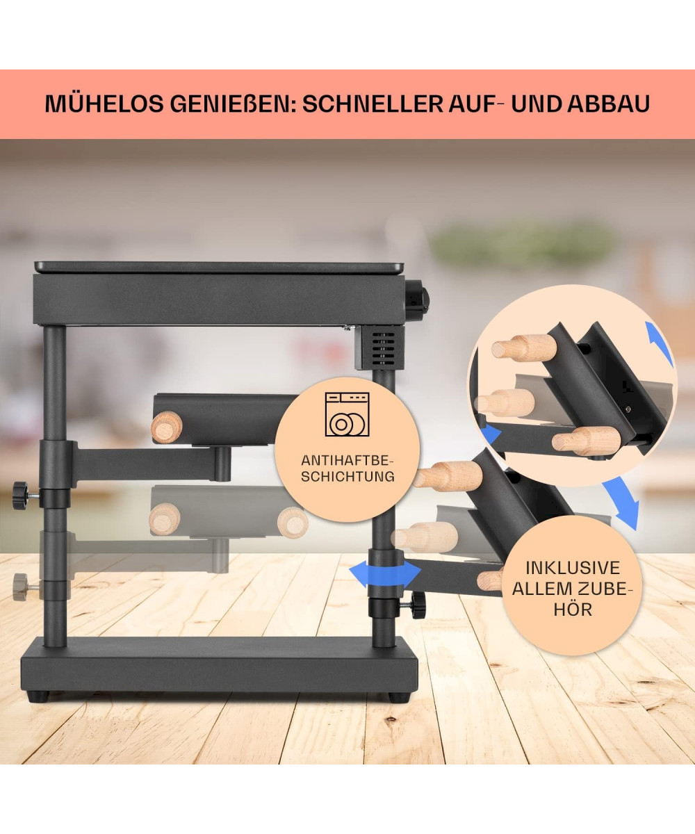 Klarstein Appenzell XL Raclette mit Grill und Temperaturregler 600W Antihaftbeschichtung