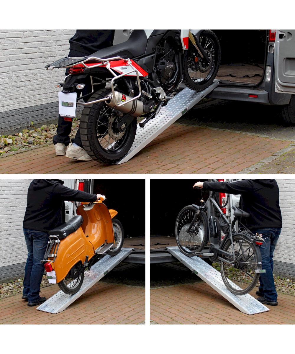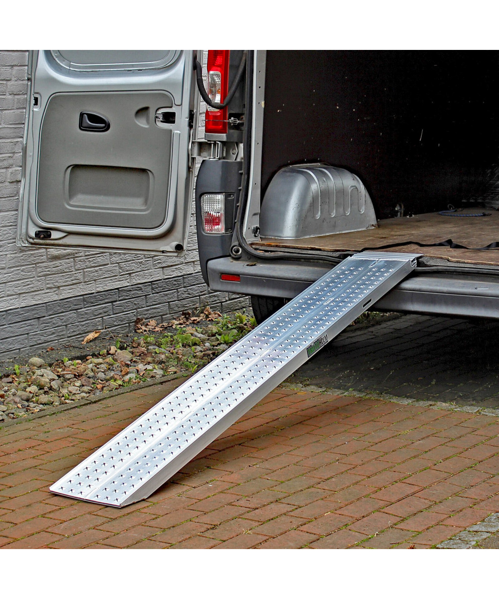 Die Aluminiumrampe ist vielseitig verwendbar, sowie sicher und einfach in der Nutzung.