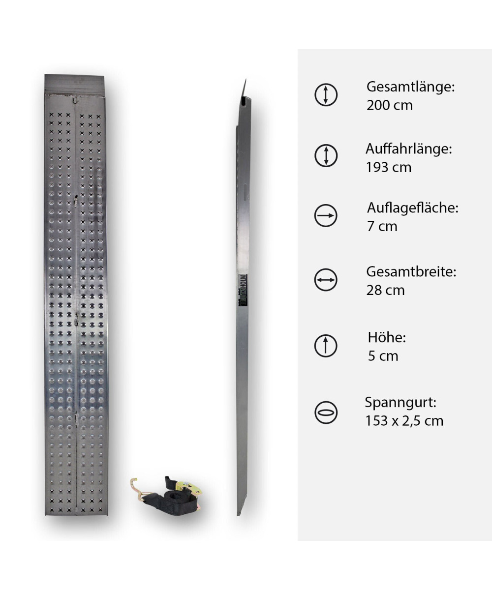 Maße: 200 x 28 x 5 cm (LxBxH) - Auffahrlänge: 193 cm