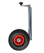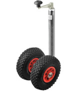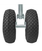 Dieses Stützrad hat ein Zwillingsrad mit Luftbereifung.
