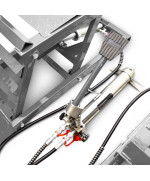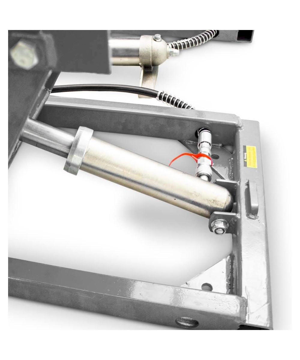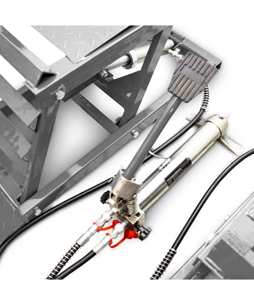 Mittels Hydraulikpumpe wird der Wagenheber auf die gewünschte Höhe gebracht, einfach mit dem Fußpedal pumpen.