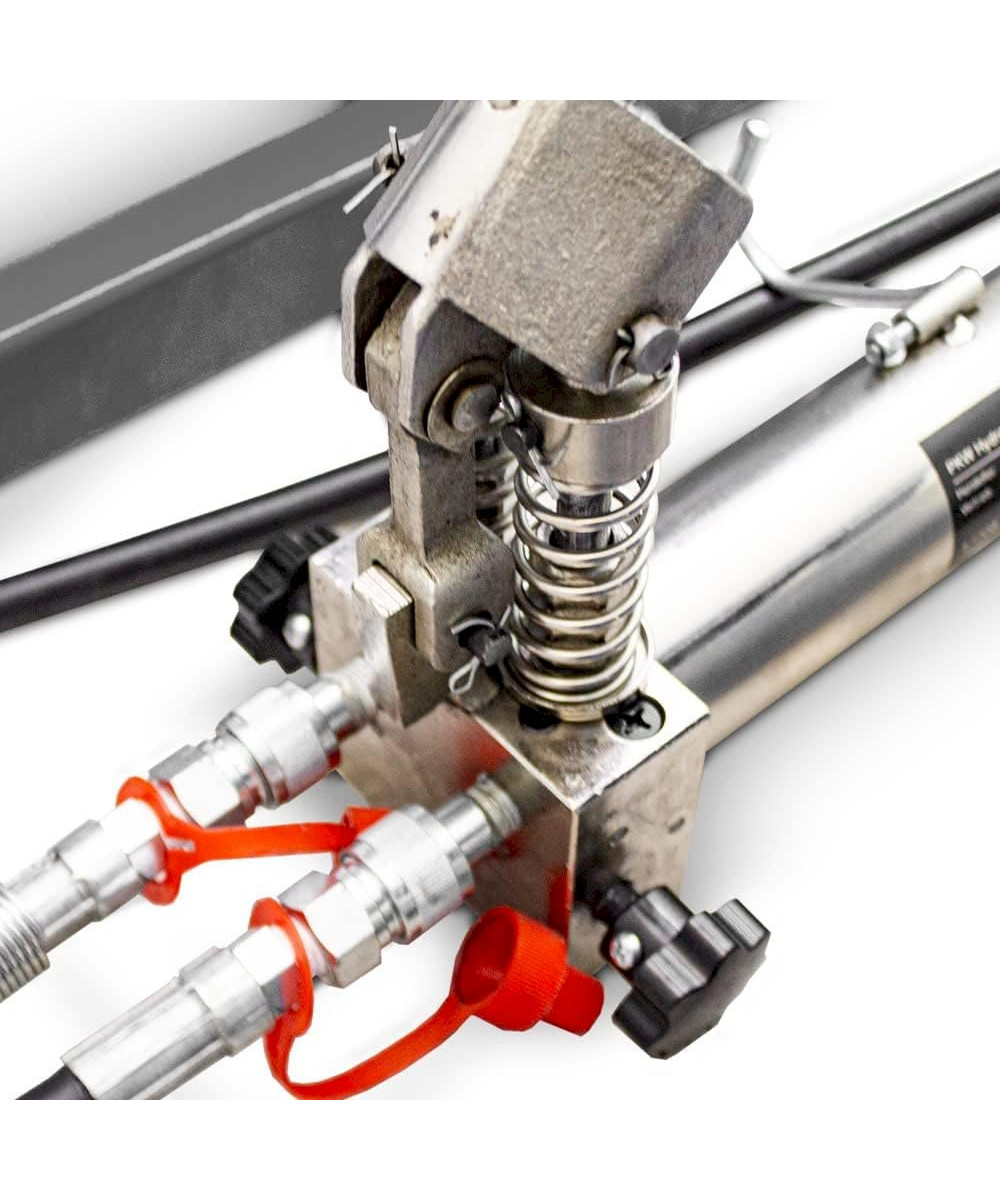 Durch die langen Schläuche kann die Hyraulikpumpe überall positioniert werden.