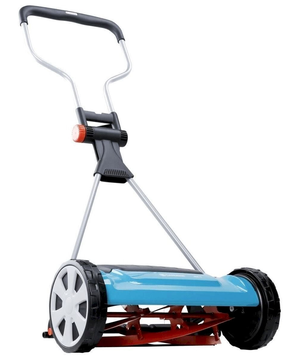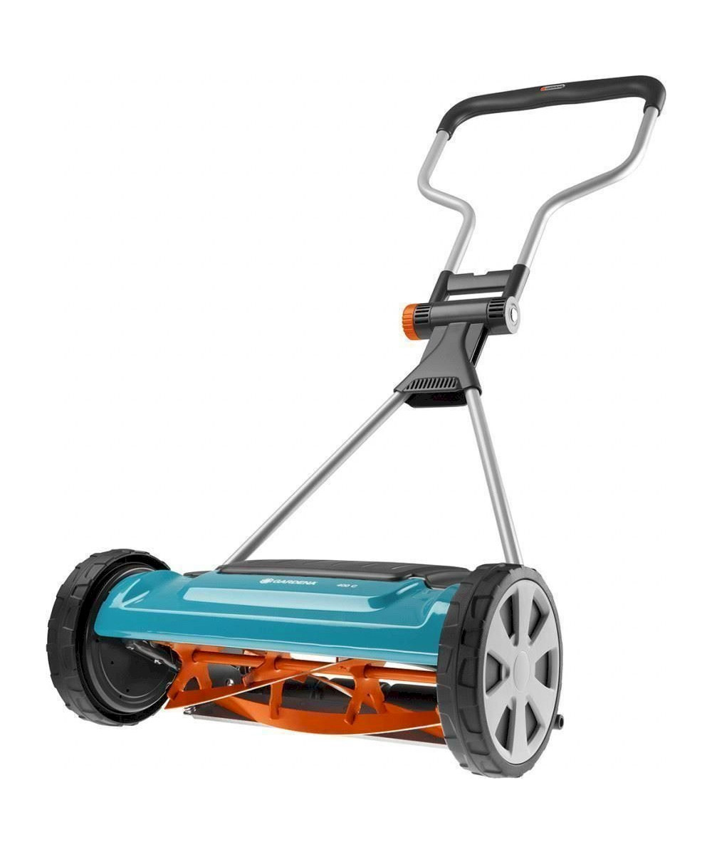 Das Prinzip des GARDENA Spindelmähers 400 C ist einfach: Beim Schieben dreht sich eine mit Messern besetzte Walze an einem feststehenden Gegenmesser vorbei. Ähnlich wie mit einer Schere wird der Grashalm erfasst und abgeschnitten. Das Besondere: die Messerwalze und die Untermesser berühren sich nicht und ermöglichen ein angenehmes und geräuscharmes Arbeiten sowie ein leichtes Schieben. Die gehärtete, antihaftbeschichtete Messerwalze aus Qualitätsstahl und das geschliffene Untermesser garantieren einen sauberen Präzisionsschnitt für einen top gepflegten Rasen. Der GARDENA Spindelmäher 400 C ist mit vielen Komfort-Elementen ausgestattet, die Ihnen das Arbeiten leichter und komfortabler machen. Große Räder mit Spezialprofil und Weichkunststoff-Komponenten erleichtern spürbar die Führung und sorgen für einen noch besseren Griff auf dem Rasen. Dank ergonomisch geformter Griffbügel lässt sich der Spindelmäher angenehm schieben. Praktisch: Zur platzsparenden Aufbewahrung und zum kompakten Transport lässt sich das Gestänge mit einem Schnell-Verschluss einfach und rasch zusammen klappen. Die gewünschte Schnitthöhe kann über handliche Regler eingestellt und auf einer Skala einfach abgelesen werden.