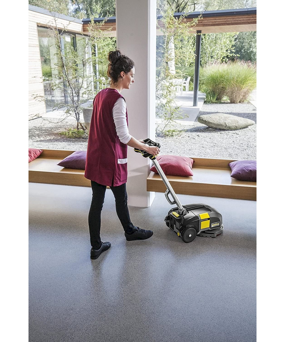 Batteriebetrieben und damit frei von Kabeln und dazugehörenden Stolperfallen, begeistert unsere extrem kompakte Scheuersaugmaschine BD 30/4 C Bp Pack auf Kleinflächen bis zu 300 m. Ob Natur- oder Kunststein, Epoxidharz, Linoleum oder PVC: Deutlich schneller und gründlicher als von Hand reinigt und saugt das Gerät bei Bedarf auch rückwärts und dank des umlaufenden Saugbalkens auch bei allen anderen Manövern zuverlässig. Das durchdachte und besonders einfache Bedienkonzept mit farbcodierten Bedienelementen zeigt sich auch beim simplen und schnellen Wechsel der leistungsfähigen und fix wieder aufladbaren Lithium-Ionen-Batterie. Das mit nur rund 20 Kilogramm geringe Gewicht der Maschine erlaubt deren Nutzung übrigens auch ohne Aufzug in unterschiedlichen Stockwerken.