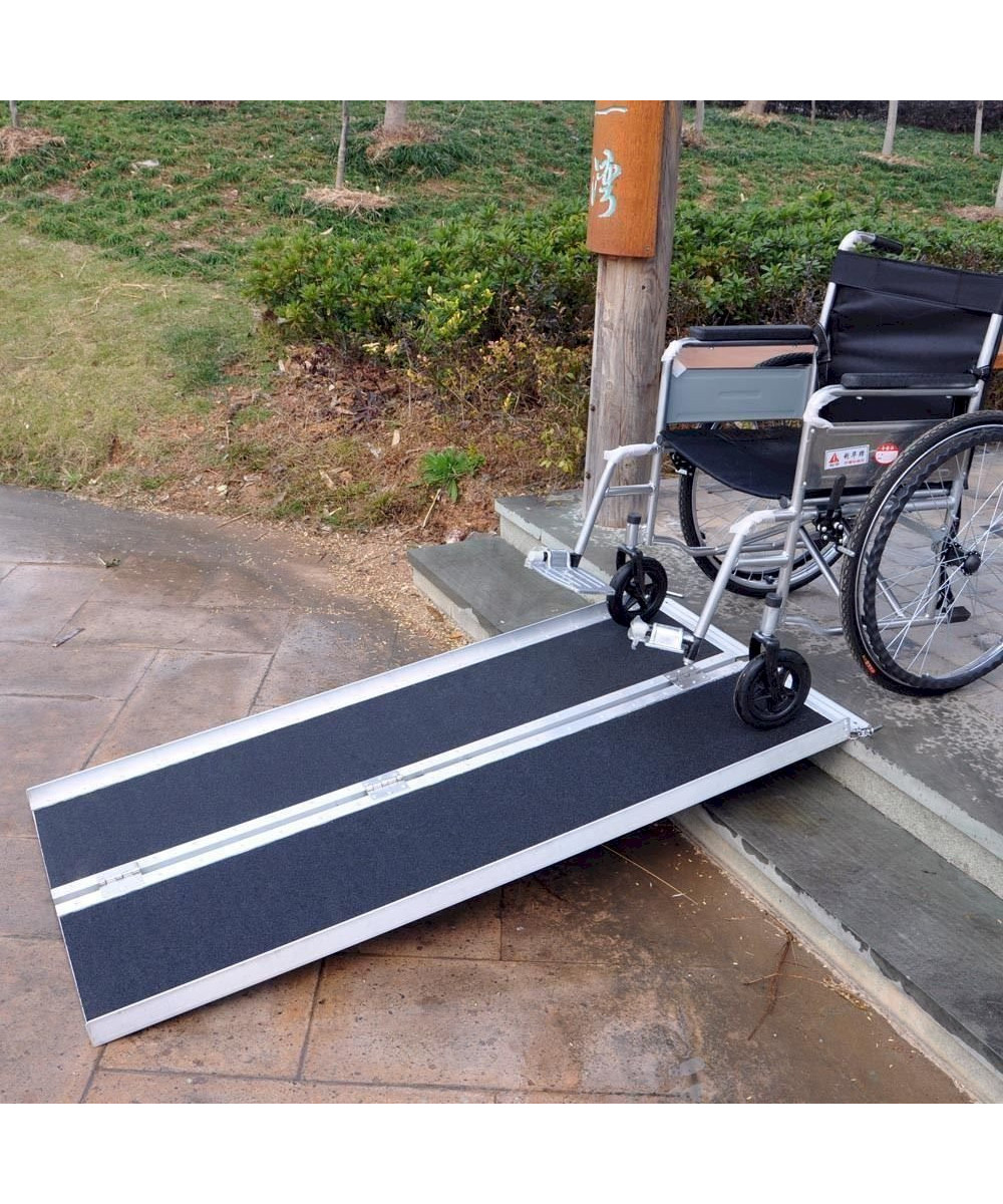 Diese praktische, doppelt faltbare Rollstuhlrampe aus leichtem Aluminium eignet sich hervorragend als mobile Hilfe und ist leicht zu transportieren. Sie ist sowohl in der Länge, als auch in der Breite klappbar. Mit ihr können mühelos Stufen überbrückt werden und sie ermöglicht barrierefreie Zugänge .