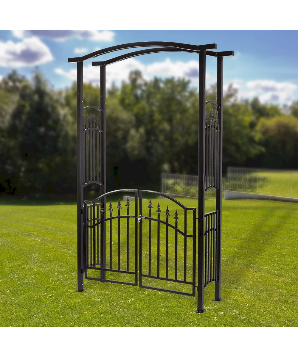 Rosenbogen mit Tür FREIBURG 140x40x220cm schwarz