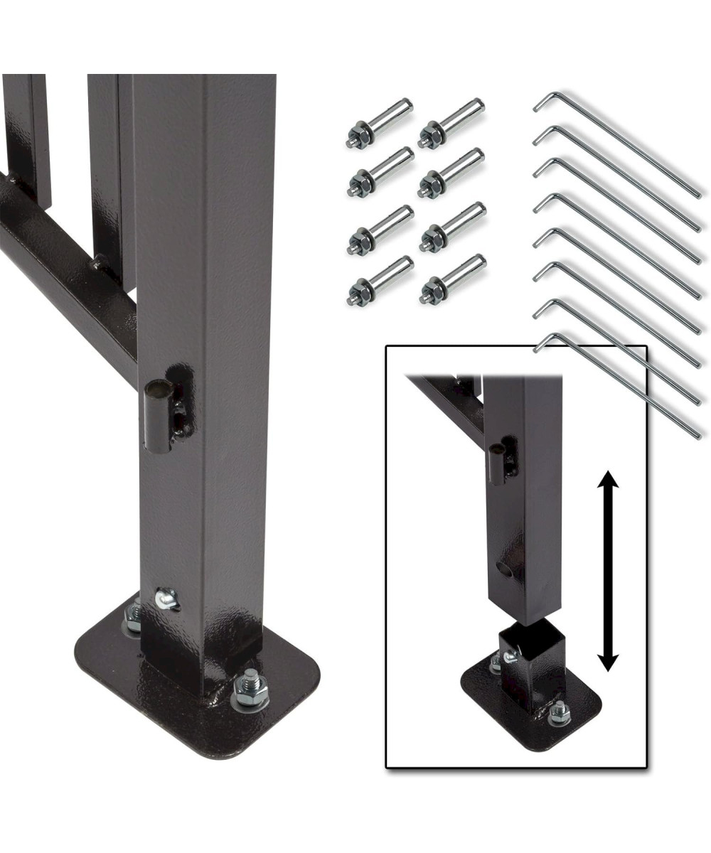 Hinweis: Zur fachgerechten Montage und Ausrichtung ist es ratsam, entweder die Füße mit kleinen Betonfundamenten zu stabilisieren oder den Rosenbogen seitlich (z.B. an einer Hauswand oder Gartenlaube) zu fixieren.
