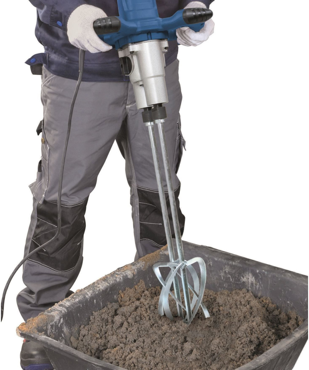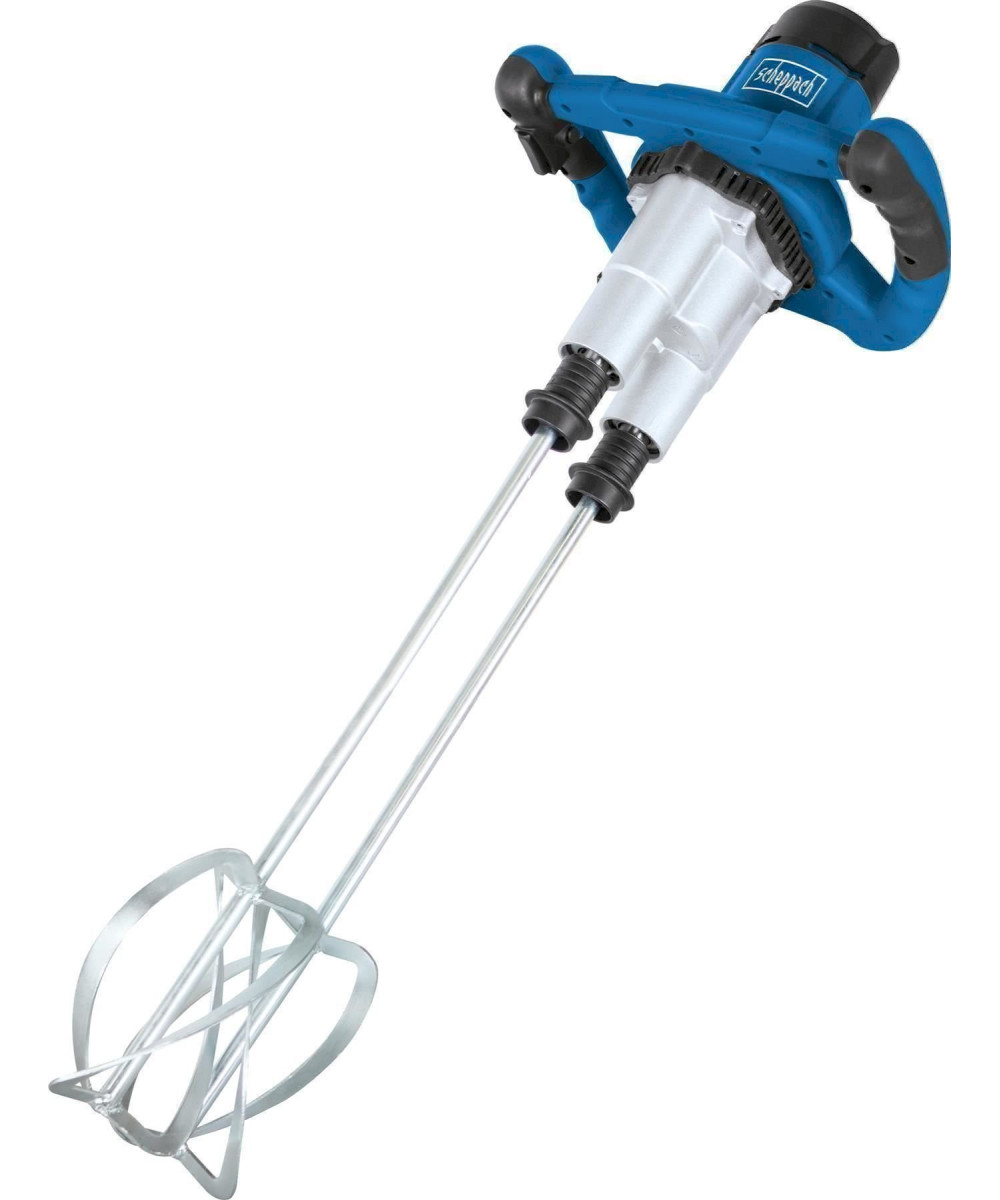 Der Scheppach PM1800D bietet mit zwei Quirlen und einem starken 1.800 Watt Motor enorme Kraft bei leichter Bedienung zum Anmischen selbst zäher Materialien, sowie flüssigen und pulverförmigen Werkstoffen wie Farben, Mörtel und Beton.