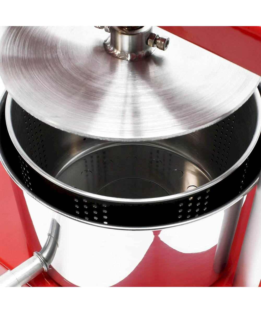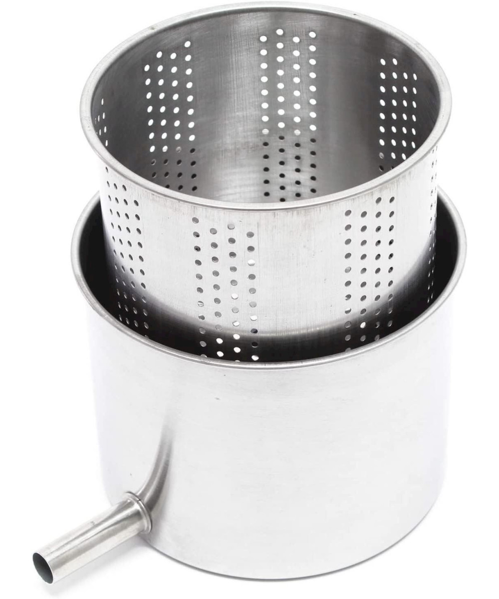 Die handliche Obstpresse/Beerenpresse ist aus Stahl gefertigt und lässt sich schnell zusammenbauen. Der doppelte Obstkorb ist aus rostfreiem Edelstahl gefertigt und besitzt die Abmessungen: