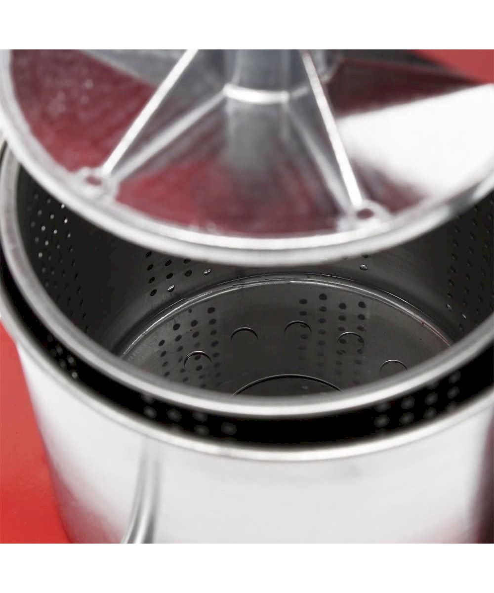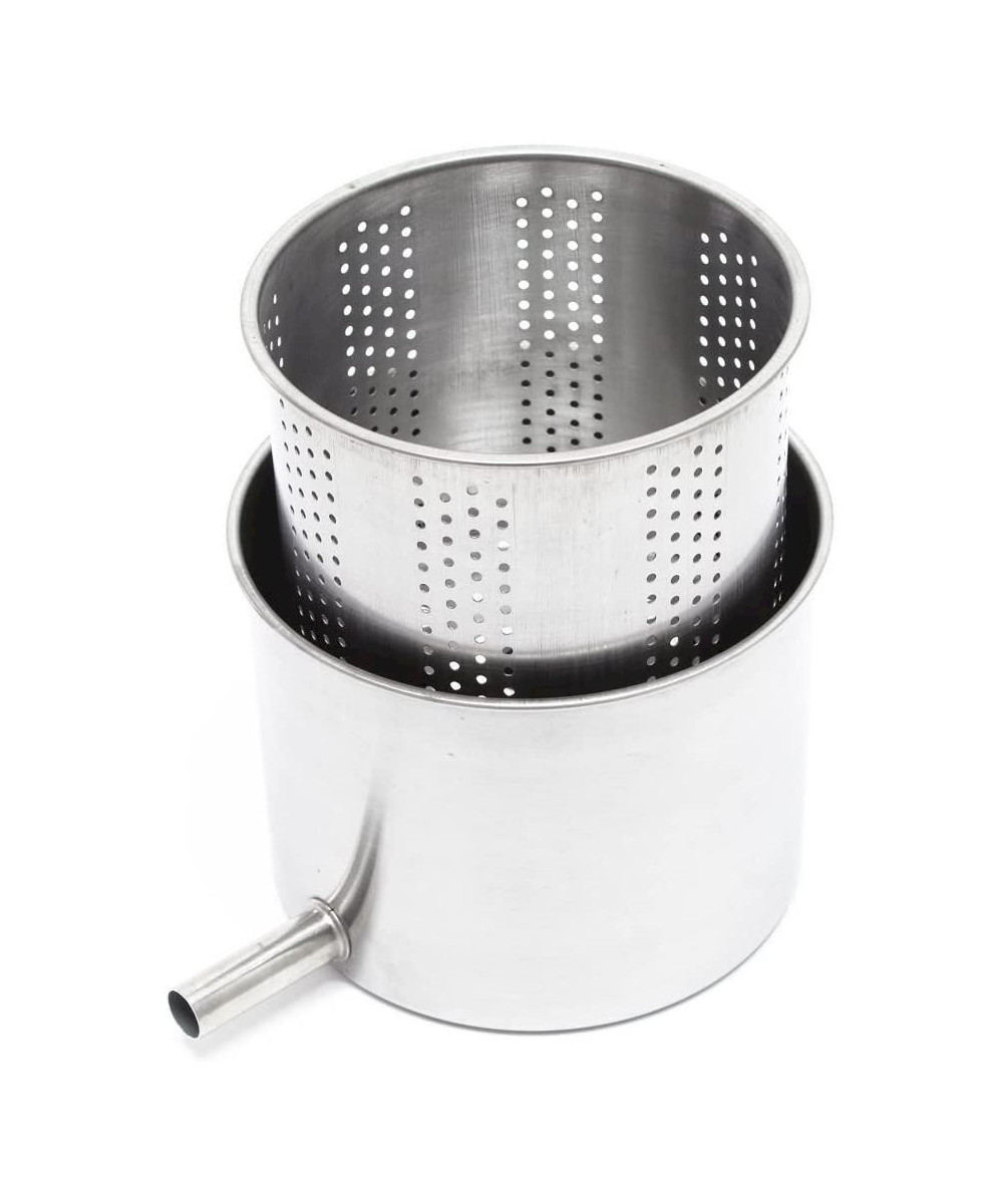 Innerer Korb: Ø 20 cm, Höhe 17 cm, Volumen 5,3 Liter. Mithilfe des Auslaufes kann der Saft praktisch abgelassen werden.