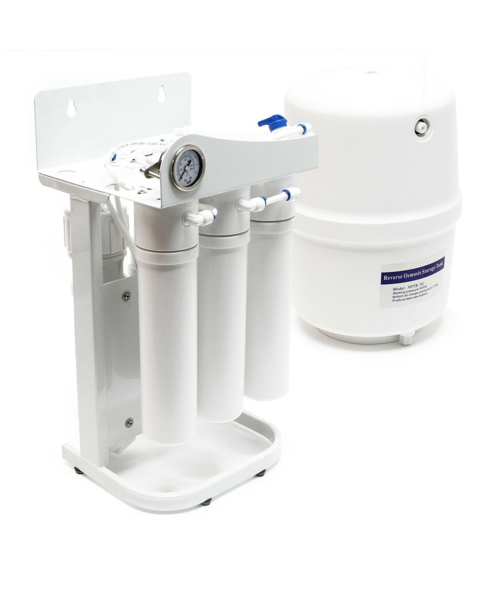 Eine moderne und umweltfreundliche Methode der Wasser-Aufbereitung für reines, weiches Trinkwasser oder entmineralisiertes Aquarienwasser liefert diese 5-Stufen-Umkehrosmose-Anlage .
