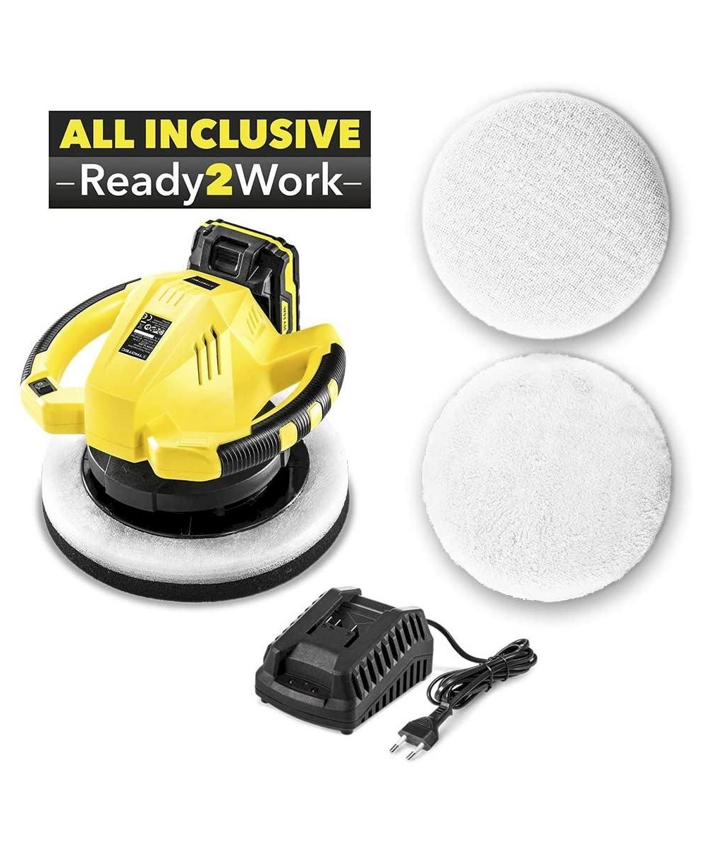 - Inkl. Frottee-Polierhaube, Synthetik-Polierhaube, Flexpower Multi-Akku, Ladegerät